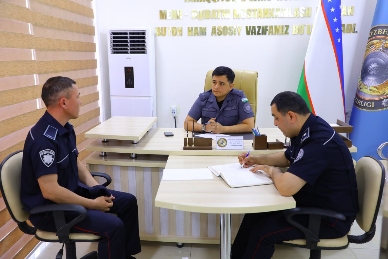 The other day, Lieutenant Colonel B.S.Jumayev, Deputy Head of the Department of Protection at the Ministry of Internal Affairs for Spiritual and Educational Work and Personnel Support, held an off-site reception with the participation of employees of the Directorate of of Protection of Surkhandarya region and their family members.