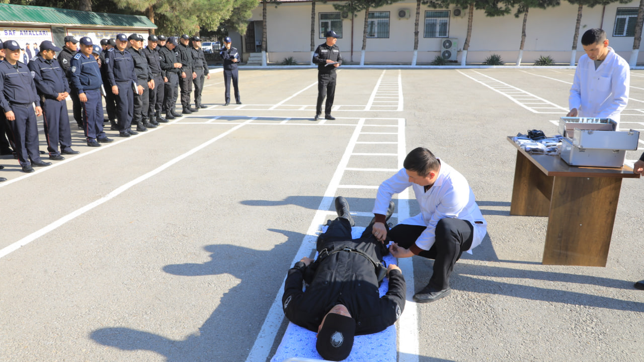 На сегодняшний день в системе ведется планомерная работа по охране здоровья личного состава и оказанию первой помощи пострадавшим на месте происшествия. В частности, на днях квалифицированные врачи провели практическое занятие с участием сотрудников Отдела охраны города Навои. В ходе практического занятия специалисты рассказали присутствующим много нового и интересного о способах остановки кровотечения, оказания первой помощи раненым, использовании первичных медицинских средств, а также о методиках использования кровоостанавливающих жгутов и средств индивидуальной защиты.