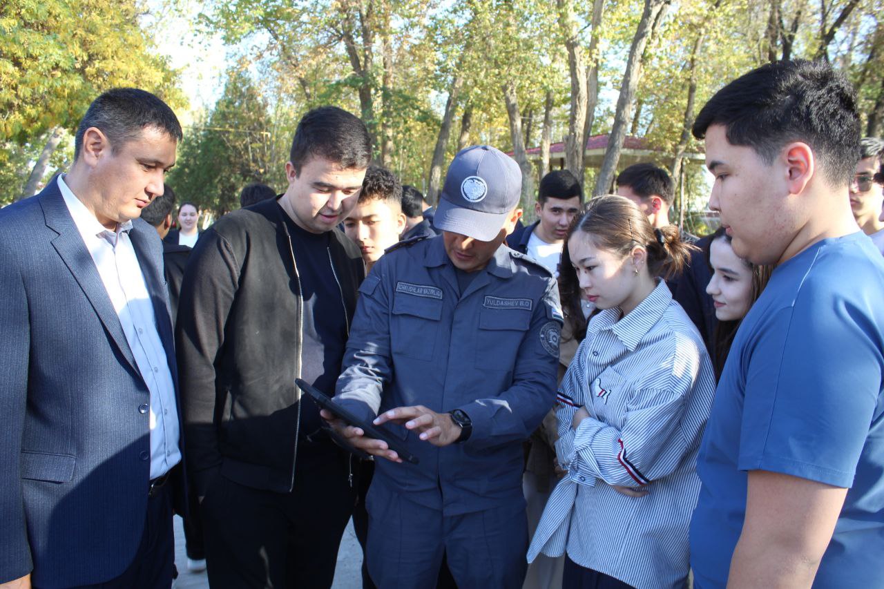 В рамках военно-патриотического воспитания молодёжи сотрудники Регионального учебного центра Республики Каракалпакстан провели день открытых дверей. Мероприятие было организовано для студентов юридического факультета Каракалпакского государственного университета имени Бердаха и учащихся Нукусского военно-академического лицея «Темурбеклар мактаби» МВД Республики Узбекистан.