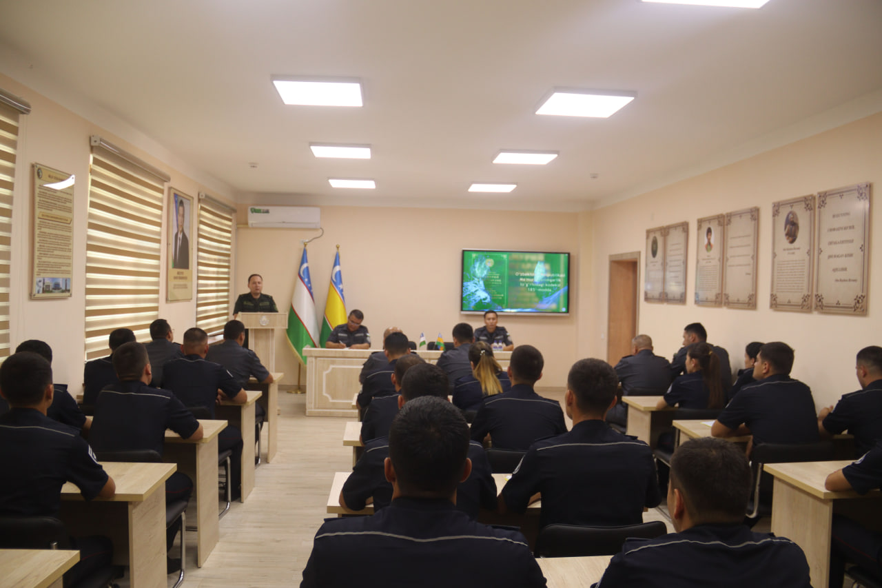 Жиззах шаҳар Қўриқлаш бўлими шахсий таркиби иштирокида ходимлар ўртасида хизмат ва ижро интизоми даражасини ошириш чора-тадбирларига бағишланган учрашув бўлиб ўтди