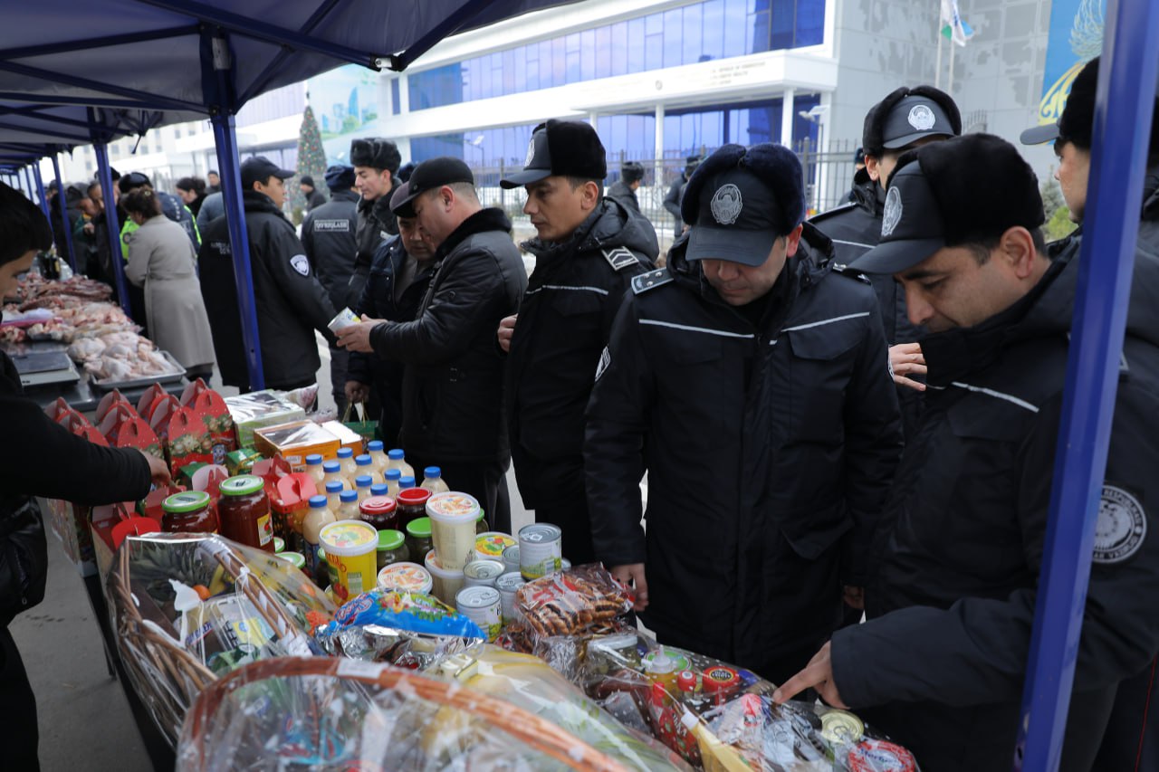 Янги йил муносабати билан Тошкент вилояти Ички ишлар Бош бошқармаси ҳамда Қўриқлаш хизмати ходимлари учун байрам олди арзонлаштирилган озиқ-овқат маҳсулотлари ярмаркаси ташкил этилди.