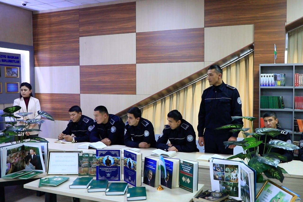 Наманган шаҳар Қўриқлаш хизмати ҳамда “Янги Ўзбекистон – ёшлар зиё маскани” ахборот-кутубхона маркази мутахассислари билан ҳамкорликда ходимлар ўртасида китобхонлик тадбири ташкил этилди. Ушбу маънавий-маърифий тадбирнинг асосий мақсади буюк алломалар, адиб ва мутафаккирларимиз ижодий меросини кенг ўрганиш, китоб ўқиш маданиятини юксалтириш ҳамда ходимлар маънавий дунёқарашини бойитишдан иборат бўлди.