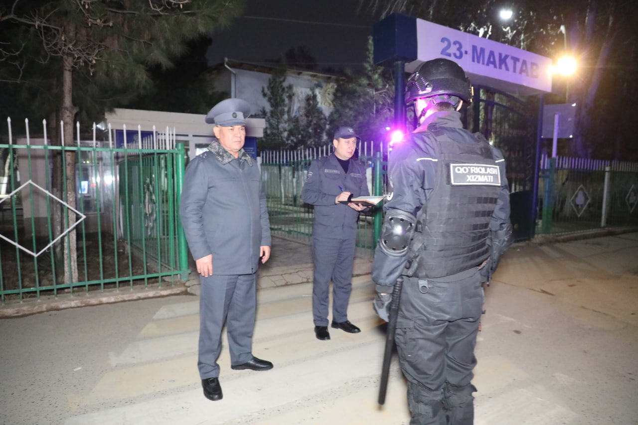 Шунингдек Қўриқлаш хизматининг мониторинг марказида ахборот -таҳлил ва ҳуқуқбузарликларни олдини олишда тизимдаги ютуқ ва камчиликлар атрофлича ўрганилди. Шундан сўнг Қарши шаҳри Қўриқлаш хизматининг тунги хизматга жалб этиладиган тезкор ҳаракатланувчи гуруҳ ходимлари иштирокида шахсий таркибнинг хизмат олди йўриқномасига ўтказилиб, ходимларга ҳушёр ва сергак хизмат олиб боришлари,ходимларининг жамоат ва фуқаролар хавфсизлигига, эл осойишталигини таъминлаш борасидаги вазифалари эслатиб ўтилди. Бундан ташқари, тунги вақтда мактаб қоровулларининг хизмат фаолият кўздан кечирилиб, “ташвиш тугмаси”нинг ишлаш даражаси ўрганилди. Ўтказилган текширувлар давомида масъулларга хавфсизликни таъминлаш, ҳудудда профилактик ишлар самарадорлигини ошириш ҳамда аҳолига зарур амалий кўмак кўрсатиш юзасидан кўрсатмалар берилди.
