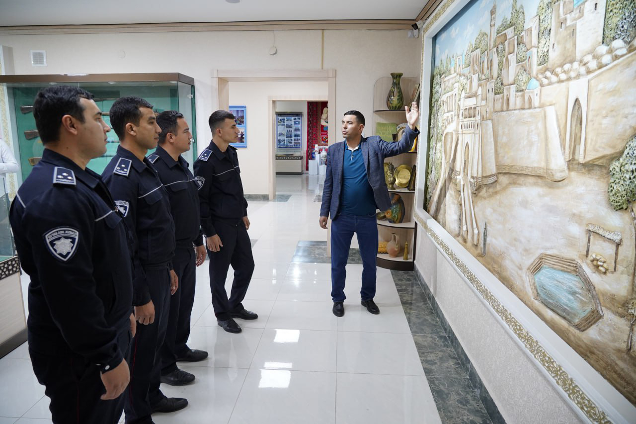 Шахсий таркибининг маънавий-маърифий салоҳияти, умумий дунёқараши, сиёсий онги, маънавий қиёфасини юксалтириш, уларда ватанпарварлик, ғурур, ифтихор, касбига нисбатан садоқат ва юқори масъулият ҳисларини мустаҳкамлаш мақсадида ташкил этилган ушбу саёҳат давомида ходимлар музей бўлимлари ва тарихий экспонатлар билан танишиб, Ички ишлар ходимларининг маънавий ҳаёти ва тарихий аҳамиятини акс эттирган кўргазмалардан баҳраманд бўлдилар.