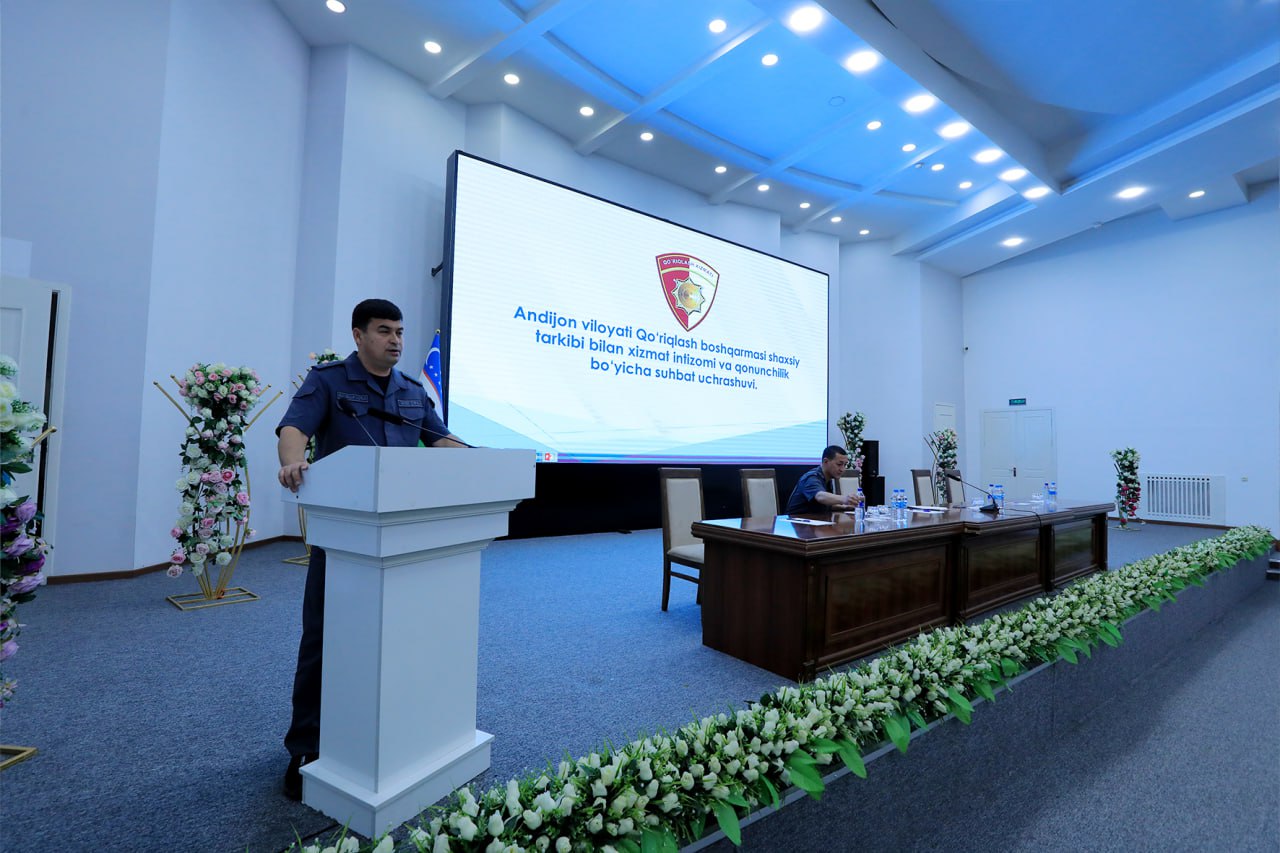 Тадбирда Қўриқлаш департаменти, Андижон вилояти Қўриқлаш бошқармаси раҳбарияти, шаҳар ва туман бўлинмалари ходимлари иштирок этди. Учрашув давомида хизмат фаолиятининг асосий жиҳатлари, жумладан, хизмат интизомига риоя қилиш, ички тартиб-қоидаларни бажариш, хизматда ўзини тутиш маданияти, йўл ҳаракати қоидаларига риоя қилиш, шахсий хавфсизликни таъминлаш ва жамоат тартибини сақлаш масалалари кўриб чиқилди.