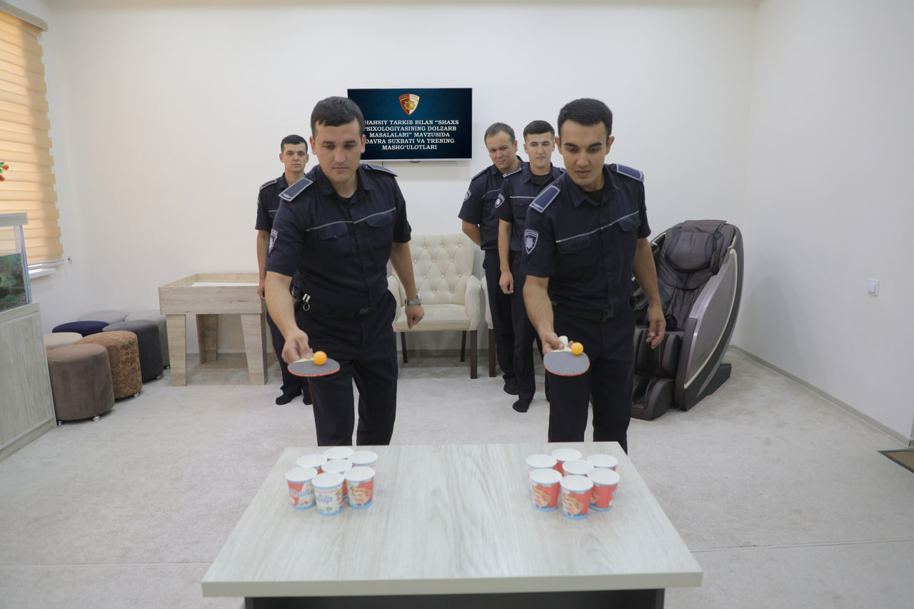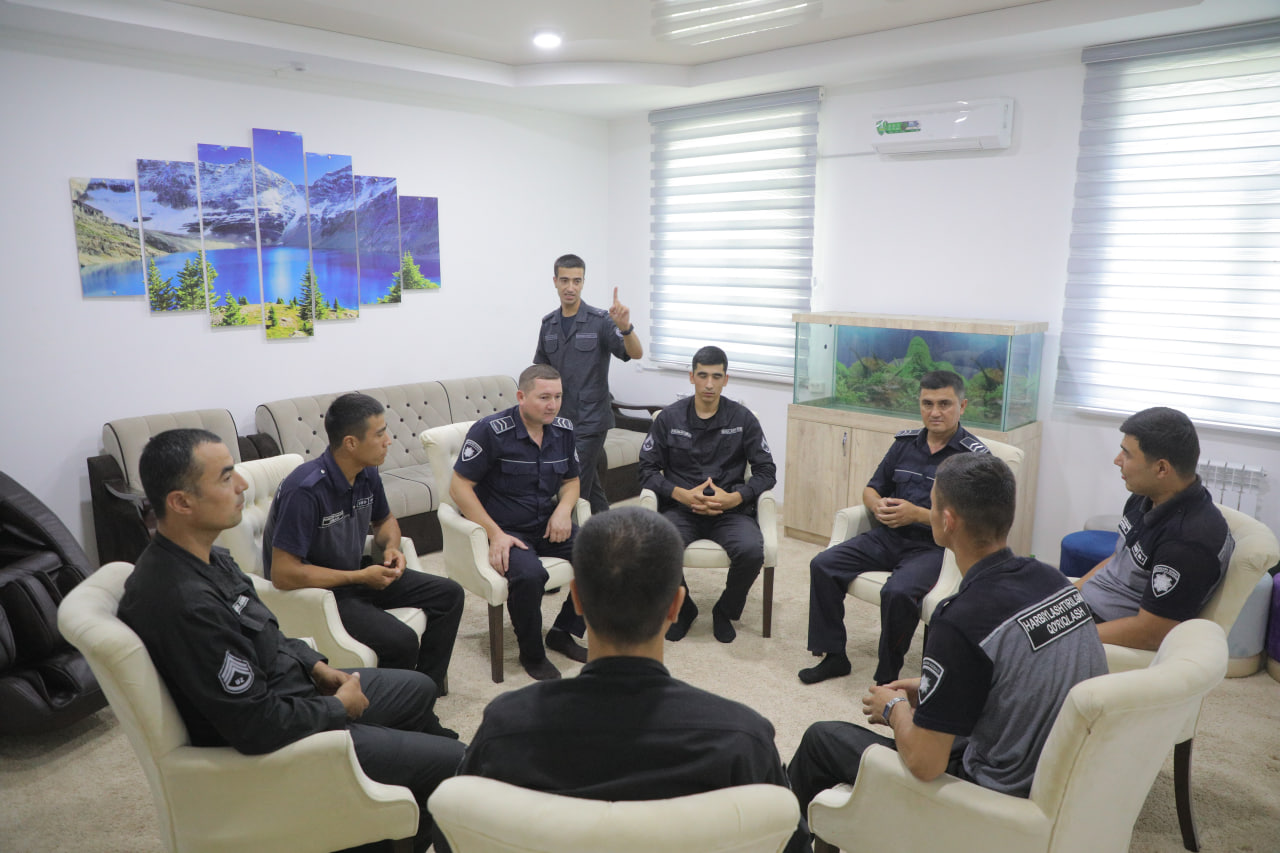 Хоразм вилояти Қўриқлаш бошқармаси ходимларининг хизмат фаолияти самарадорлигини ошириш, жамоавий муносабатларни мустаҳкамлаш, руҳий барқарорликни таъминлаш мақсадида давра суҳбати ҳамда психологик тренинг машғулотлари ташкил этилди.