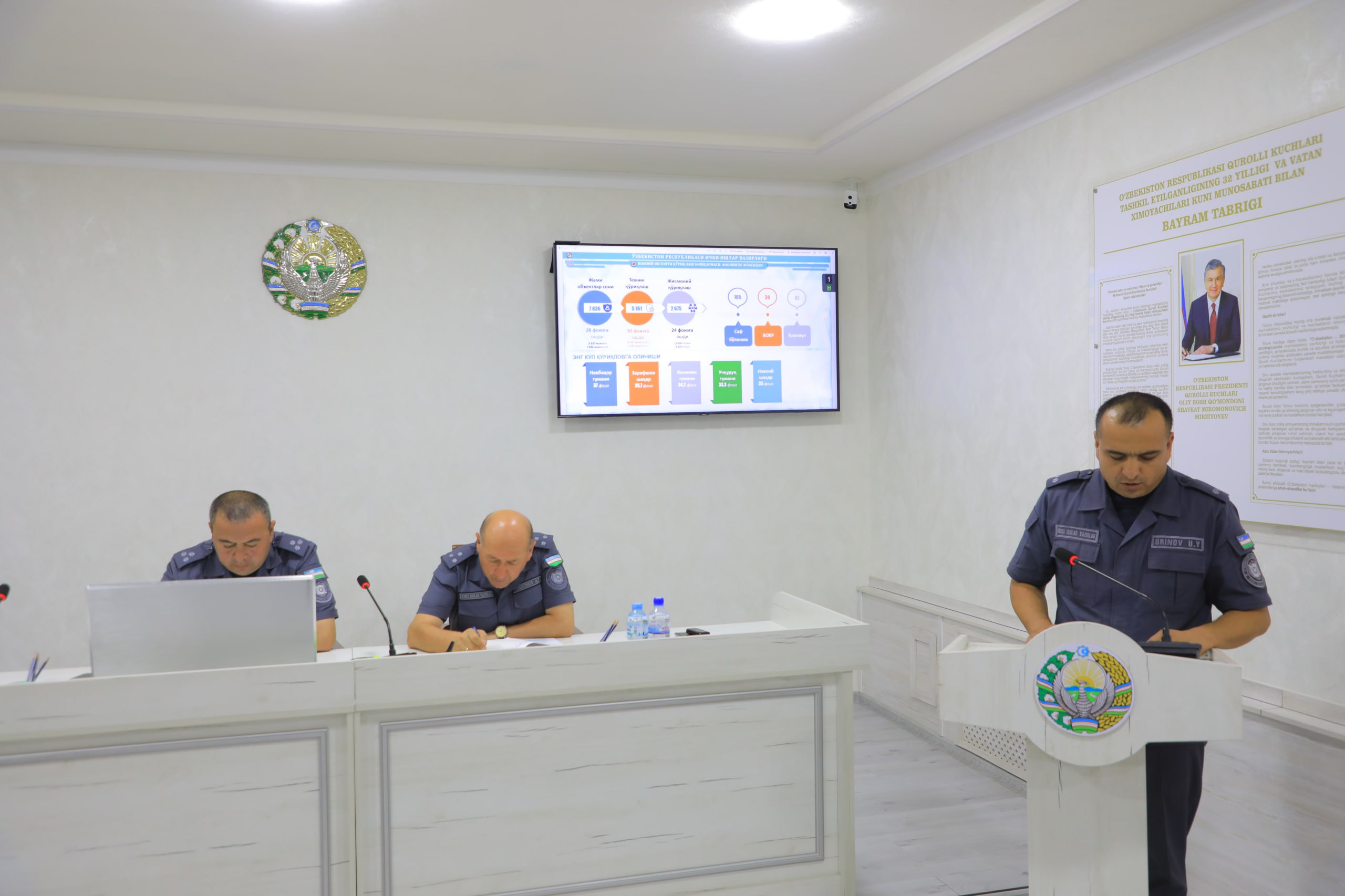 Шу муносабат билан, Навоий вилояти Қўриқлаш бошқармаси раҳбарияти иштирокида ўтган 6 ойлик иш натижалари юзасида ҳисобот йиғилиши ўтказилди. Йиғилишда хар бир шаҳар ва туман Қўриқлаш бўлимларининг мазкур давр мобайнида барча йўналишларда амалга оширган ишлари, йўл қўйилган камчиликлари, эришган ютуқлар хусусида батафсил тўхталиб ўтилди.