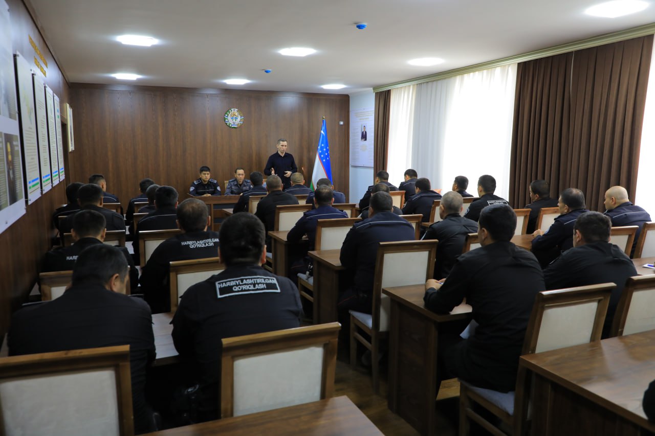 Учрашувда хизмат интизомига қатъий амал қилиш, фуқаролар мулкини ҳимоя қилишда юқори масъулият билан иш тутиш ҳар бир ходим учун асосий бурч эканлиги таъкидланди. Шунингдек, коррупция жиноятининг олдини олиш, хизмат жараёнида қонун устуворлигини таъминлаш ва фуқаролар ишончини оқлаш бўйича аниқ вазифалар белгиланди. Масъул офицерларга ходимлар билан якка тартибдаги тарбиявий суҳбатларни олиб бориш, уларнинг яшаш хонадонига борган ҳолда оилавий аҳволини ўрганиш, мавжуд муаммоларини ҳал этиш юзасидан вазифалар юклатилди.