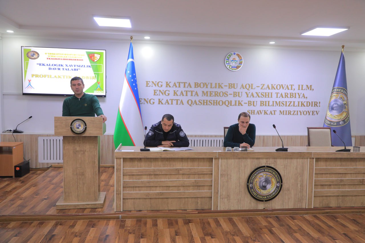 Тадбирда экологик хавфсизликни таъминлашда ҳуқуқни муҳофаза қилувчи органларнинг ўрни, табиатни муҳофаза қилишга оид қонун ҳужжатлари, экологик ҳуқуқбузарликларнинг олдини олиш масалаларига алоҳида эътибор қаратилди.