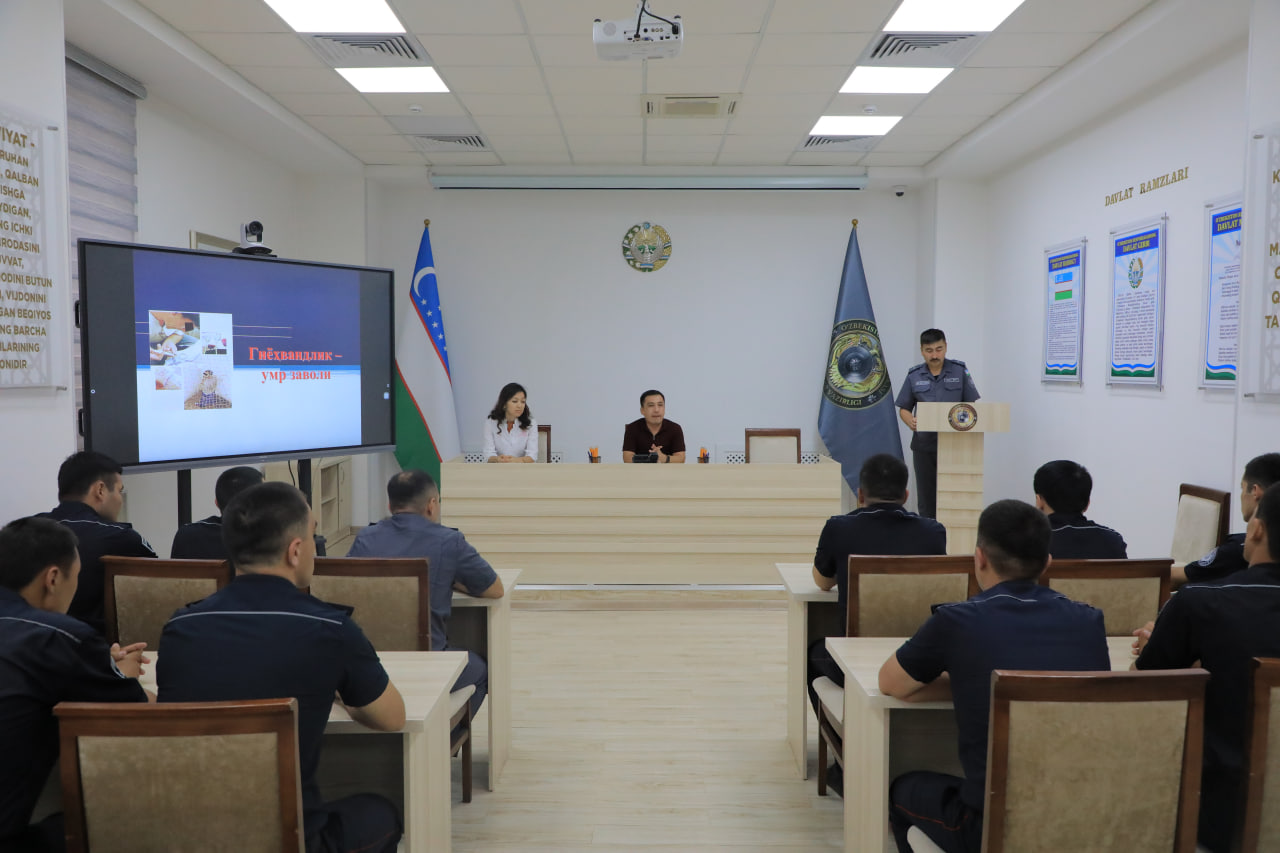 Халқаро гиёҳвандликка қарши курашиш куни муносабати билан Тошкент минтақавий ўқув маркази шахсий таркиби ва тингловчилари ўртасида гиёҳвандликнинг салбий оқибатлари, инсон саломатлигига ва келажак авлодга таъсири, шунингдек, соғлом турмуш тарзига риоя қилиш, мавсумий касалликлар ва уларнинг профилактикаси юзасидан семинар машғулоти ўтказилди.