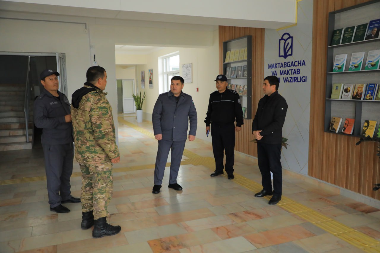 Сурхондарё вилояти Қўриқлаш бошқармаси раҳбарияти томонидан Жарқўрғон туманида жиноят ва ҳуқуқбузарликларнинг олдини олиш, объектлар ҳамда таълим муассасалари хавфсизлигини таъминлаш борасидаги ишлар ўрганилди