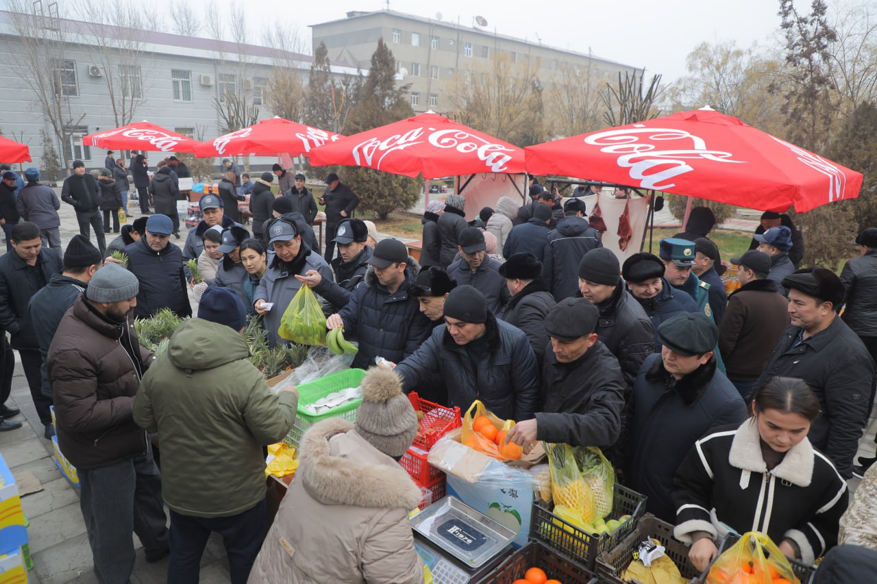 On the eve of the New Year, a pre-holiday fair was organized for employees of the Main Department of Internal Affairs and the Protection Service of Tashkent region. It presented food products at discounted prices — significantly below market prices.