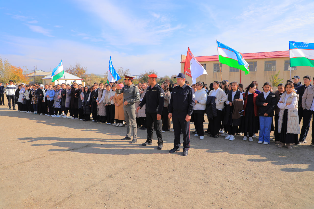 The National Guard Department for Samarkand region and the Directorate of "Protection", together with the Department of Preschool and School Education, organized another military-patriotic event dedicated to the 33rd anniversary of the adoption of the National Flag of the Republic of Uzbekistan, held at secondary school № 52 of Tailak district.