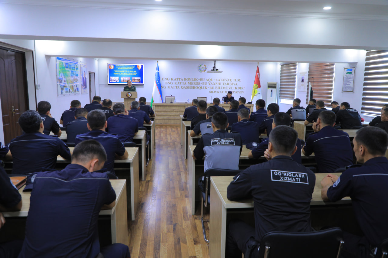 The other day, with the participation of employees of the Department of "Protection" of Pakhtakor district, a meeting was held on the regulation of the official activities of departmental protection units and staff training.