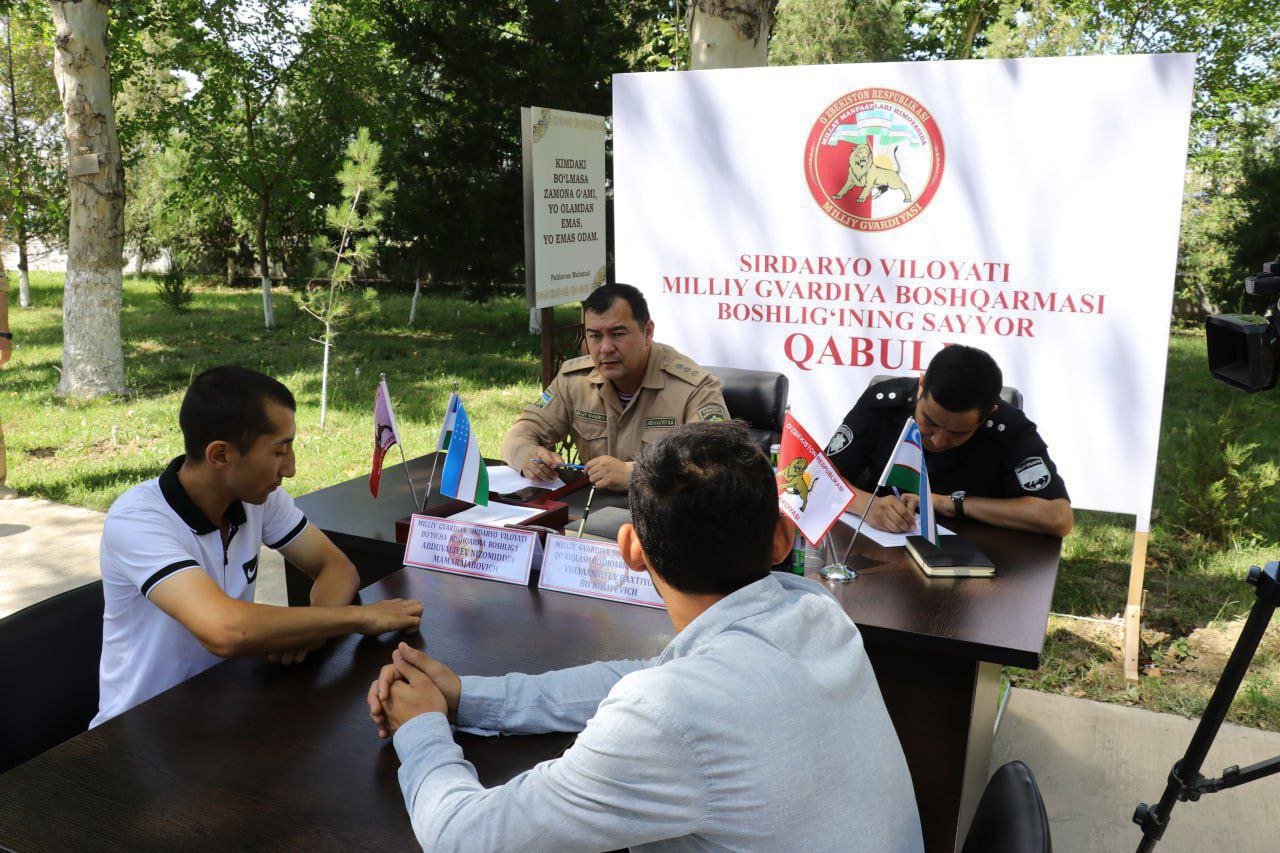At the initiative of the responsible heads of Syrdarya Regional Prosecutorʼs Office, the National Guard Department for Syrdarya region, the Department of Internal Affairs and other law enforcement agencies, an on-site reception was organized at the Institute of Chemical Technologies located in Yangiyer city for residents of the city in order to provide social support to the population and unorganized youth assigned to the National Guard, as well as to study existing problems.