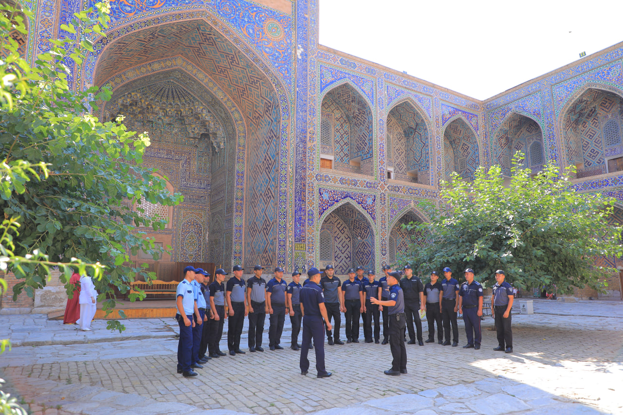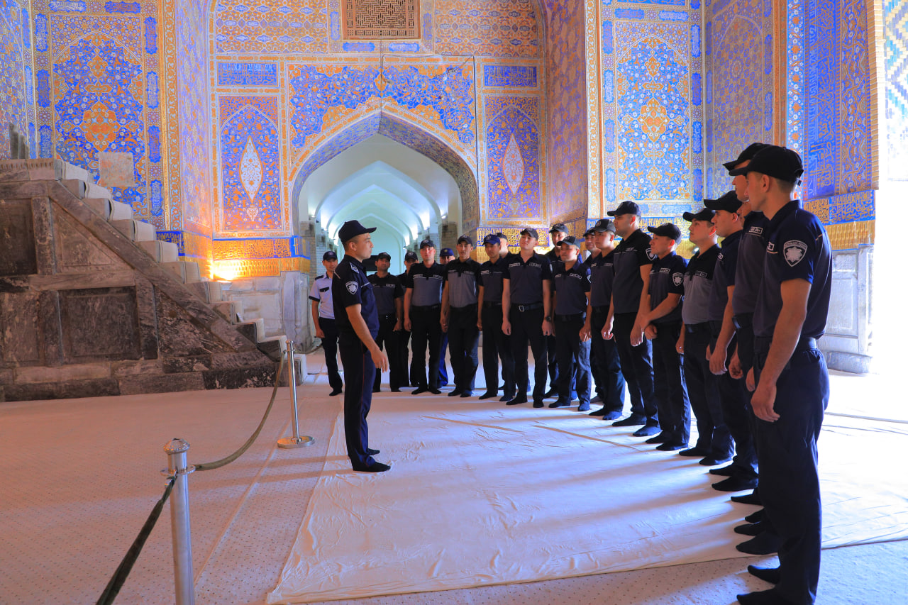 As part of the event, employees of paramilitary protection units serving in Samarkand city visited one of the unique masterpieces of world civilization — the Registan complex.