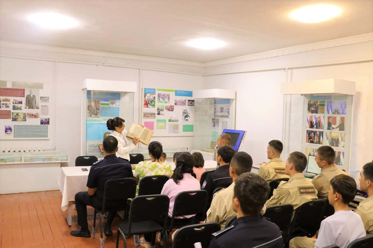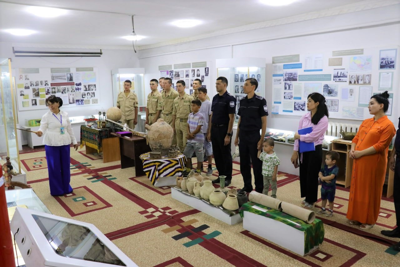 Thus, in order to organize a meaningful leisure time for the servicemen and employees of the National Guard of Syrdarya region, as well as their families, an excursion to the Museum of Memory of the Victims of Repressions, founded in Gulistan State University, was organized.