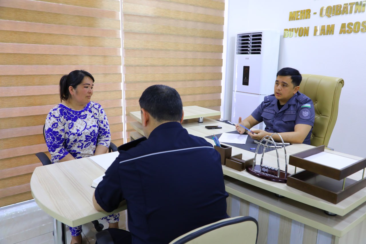 The other day, Lieutenant Colonel B.S.Jumayev, Deputy Head of the Department of Protection at the Ministry of Internal Affairs for Spiritual and Educational Work and Personnel Support, held an off-site reception with the participation of employees of the Directorate of of Protection of Surkhandarya region and their family members.
