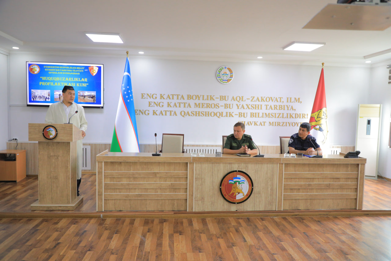 As part of the work to maintain official discipline and legality among the personnel, create an atmosphere of intolerance towards cases of offenses, prevent the occurrence of various unpleasant situations and accidents, as well as within the framework of the Crime Prevention Day, a preventive event with the participation of employees was organized in the Directorate of "Protection" of the National Guard of Ferghana region.