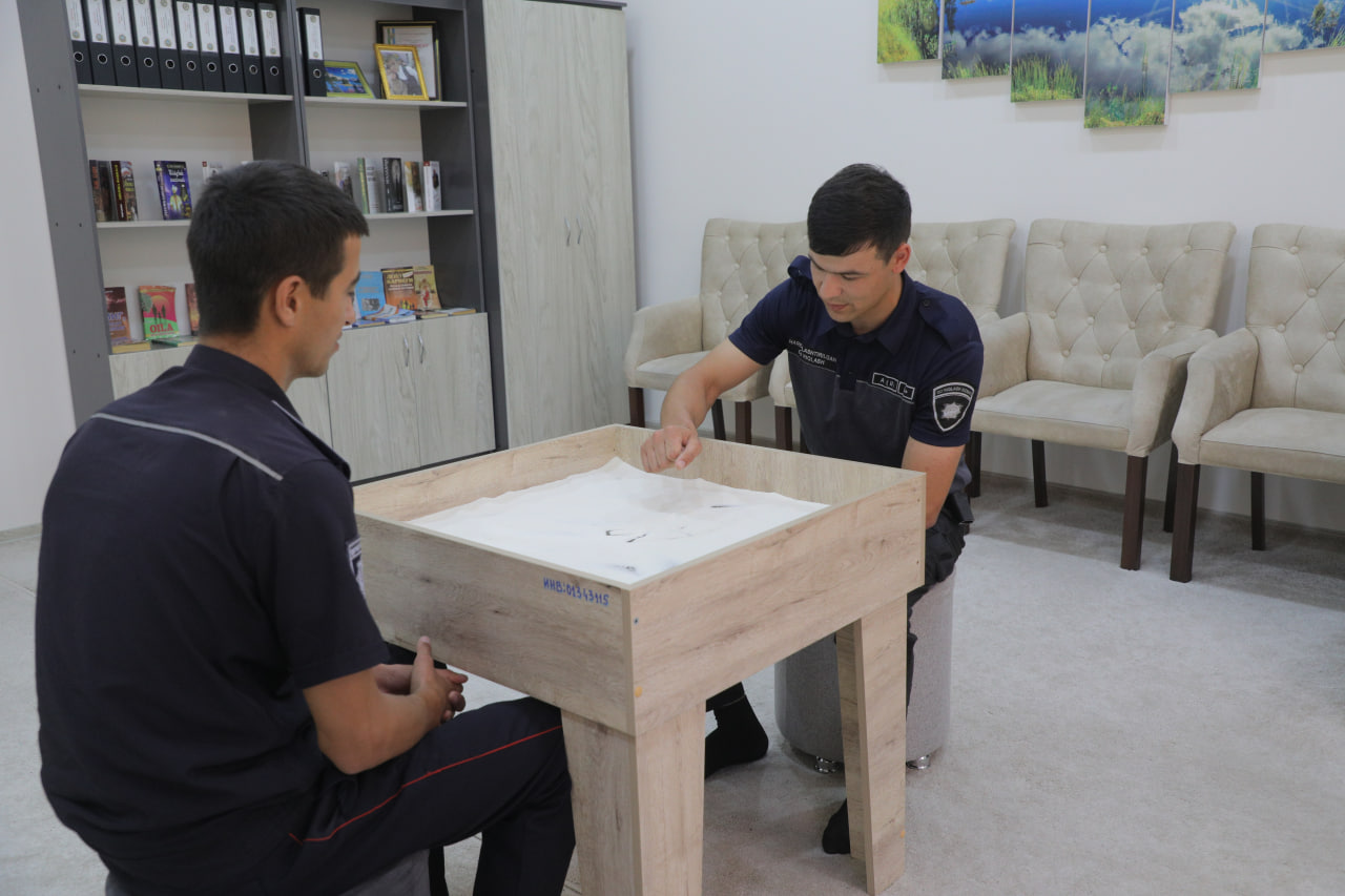 In the second part of the event, the departmentʼs psychologists conducted special psychological trainings for paramilitary personnel, including sand therapy, exercises to stimulate mental activity, and role-playing games to develop social and personal abilities.