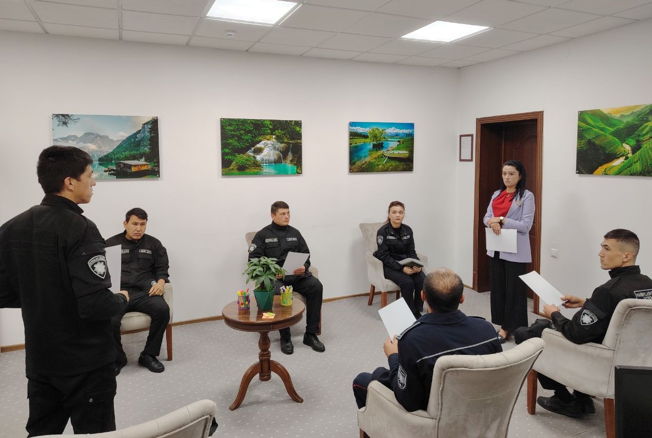 Psychologists-specialists of the Main directorate of "Protection" and territorial divisions regularly conduct psychological trainings with personnel, paying special attention to improving a healthy spiritual and moral environment among employees and their families, as well as timely elimination of problematic situations that arise during their service.