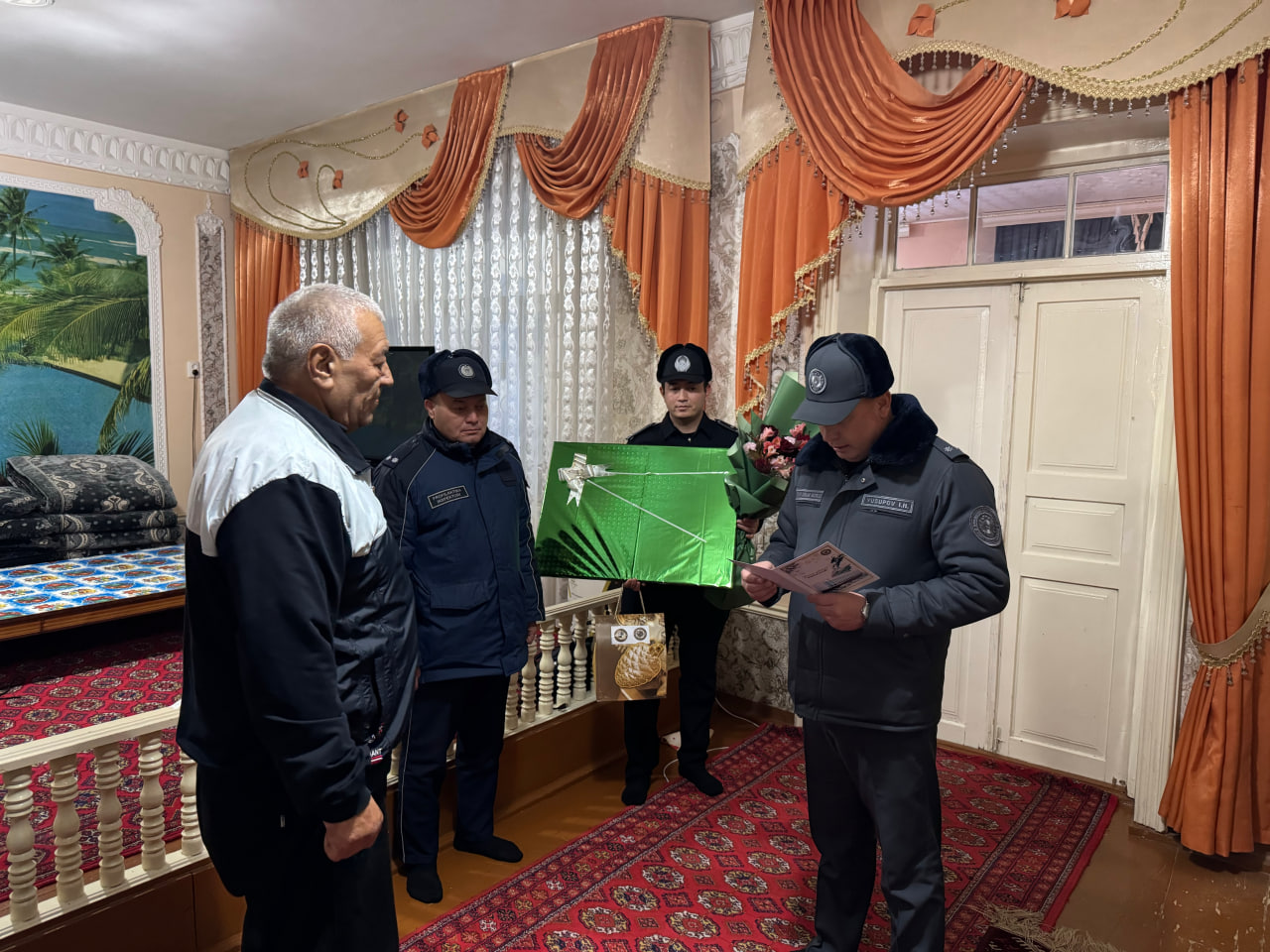 The leadership of the Protection Service of Khorezm region organized holiday visits to veterans of the service — former employees who served conscientiously, honestly and selflessly in the security system for many years and are now retired.