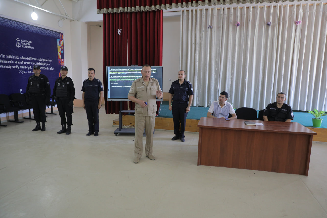 Officials of the Directorate "Protection" of Khorezm region organized a training seminar in Koshkupir district for employees of departmental protection units serving in educational institutions, government departments and business organizations.