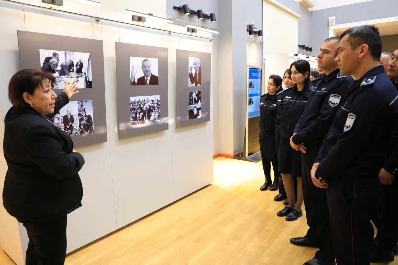 Then the staff visited the gallery located on the territory of the complex and got acquainted with documents, photographs and historical exhibits related to the life and work of Islam Karimov. The exhibits tell about his youth, education, the early stages of his political career and his role in the formation of Uzbekistanʼs independence. The materials on the reforms and resolutions adopted in 1991 made a great impression.