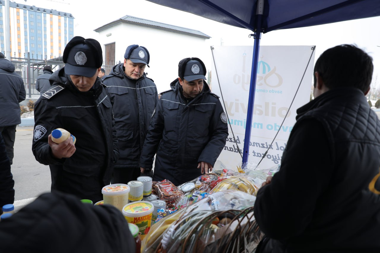 On the eve of the New Year, a pre-holiday fair was organized for employees of the Main Department of Internal Affairs and the Protection Service of Tashkent region. It presented food products at discounted prices — significantly below market prices.