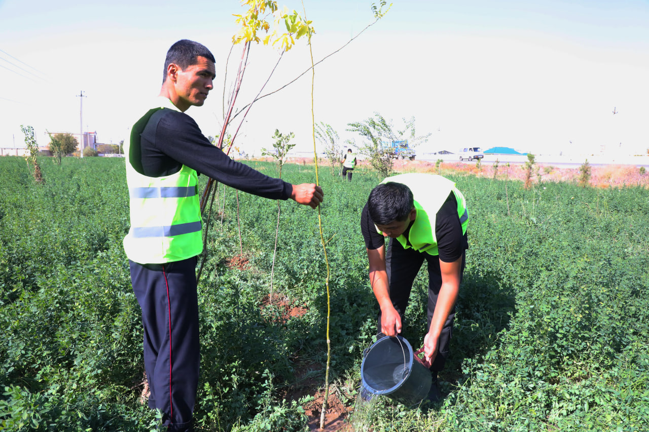As part of the nationwide Yashil Makon project, work is underway throughout the republic to plant and care for tree seedlings in mahallas, near multi-storey buildings and on central streets. Employees of the Department of Protection under the Ministry of Internal Affairs are also actively involved in this event.