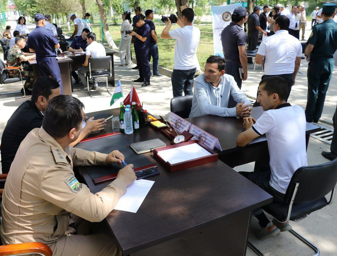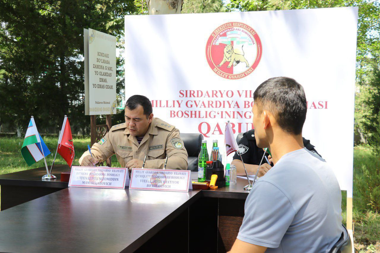 At the initiative of the responsible heads of Syrdarya Regional Prosecutorʼs Office, the National Guard Department for Syrdarya region, the Department of Internal Affairs and other law enforcement agencies, an on-site reception was organized at the Institute of Chemical Technologies located in Yangiyer city for residents of the city in order to provide social support to the population and unorganized youth assigned to the National Guard, as well as to study existing problems.
