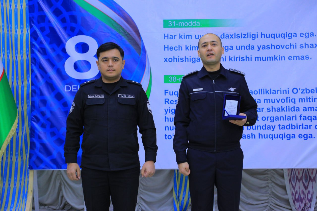 A group of employees who distinguished themselves by high achievements were awarded badges "Milliy Gvardiya fidoyi hodimi" and "Namunali hizmatlari uchun", certificates of honor from the leadership of the Main Directorate of "Protection" and memorable gifts.