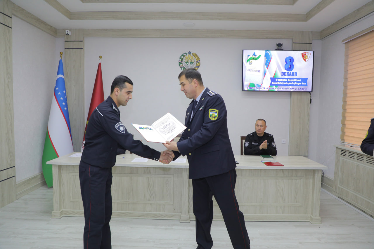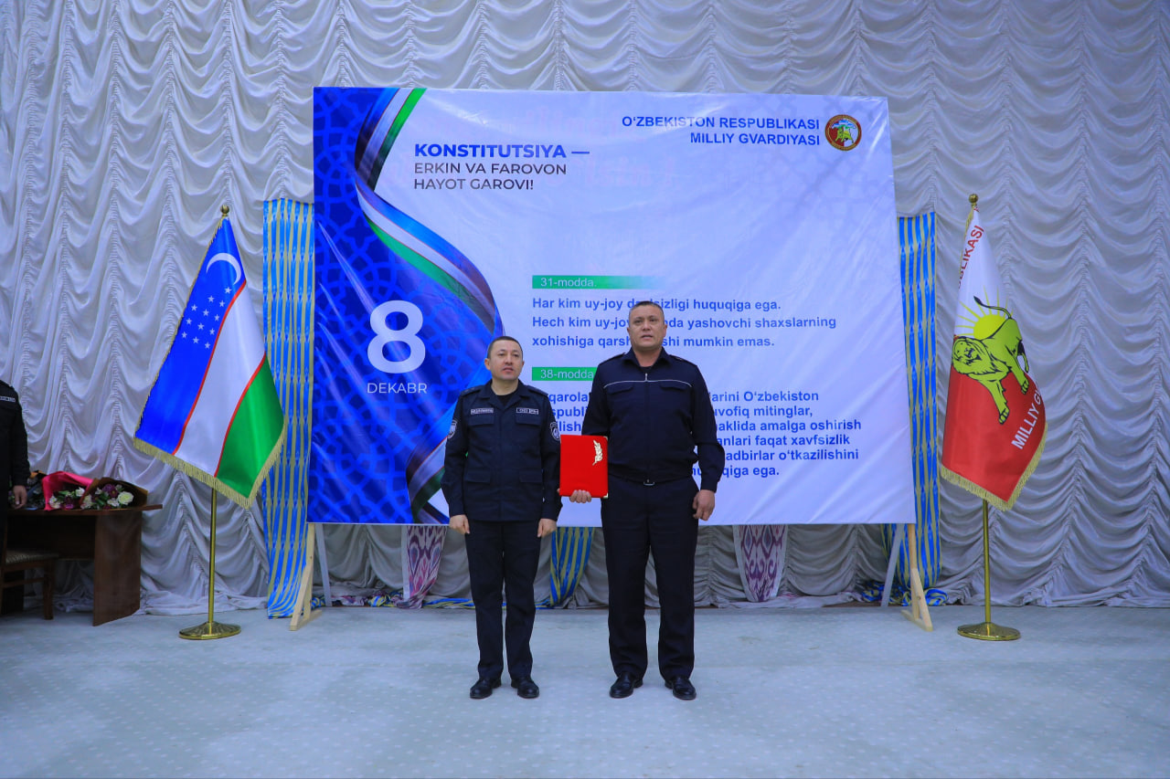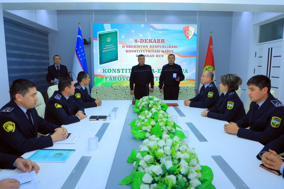 On the occasion of the 32nd anniversary of the adoption of the Constitution of the Republic of Uzbekistan, solemn events were held in the Main Directorate of "Protection" of the National Guard and its regional divisions, during which the leaders sincerely congratulated the personnel on the holiday, and also solemnly presented awards to employees who made a huge contribution to the development of the systems of the "Protection" service.
