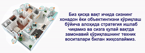 Equipping facilities of legal entities with technical means of protection is carried out by specialists of the State Unitary Enterprise "Qo'riqlash Servis" on a contractual basis.