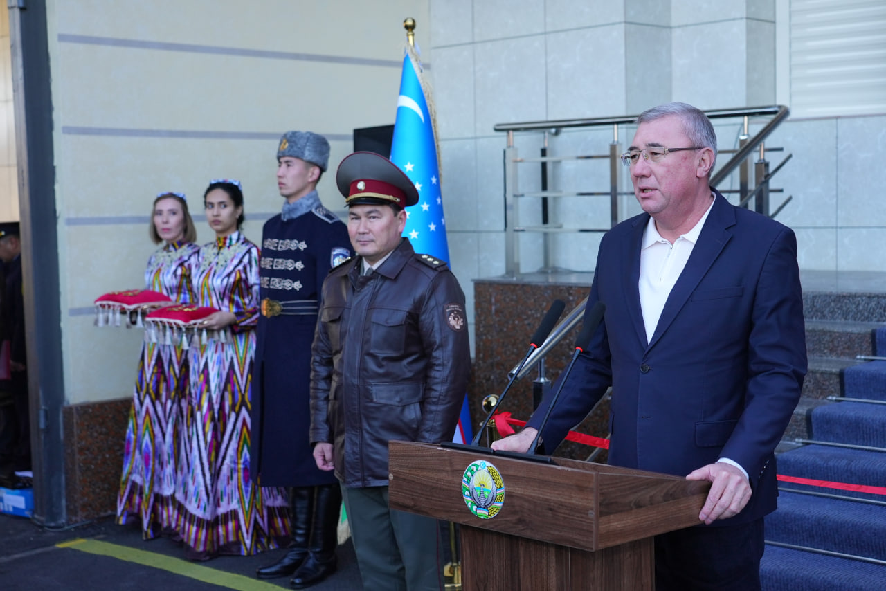 Milliy gvardiya qoʻmondoni oʻzining kirish soʻzida, bayram arafasida foydalanishga topshirilayotgan maʼmuriy binolar shaxsiy tarkib uchun munosib sovgʻa ekanligini taʼkidlab, tantanali marosimlarga tashrif buyurgan mehmonlarni va saf tortib turgan barcha Milliy gvardiya xodimlarini hamda ular orqali barcha safdosh doʻstlarni Qurolli Kuchlarimiz tashkil etilganligining 33 yillik bayrami bilan samimiy muborakbod etdi.