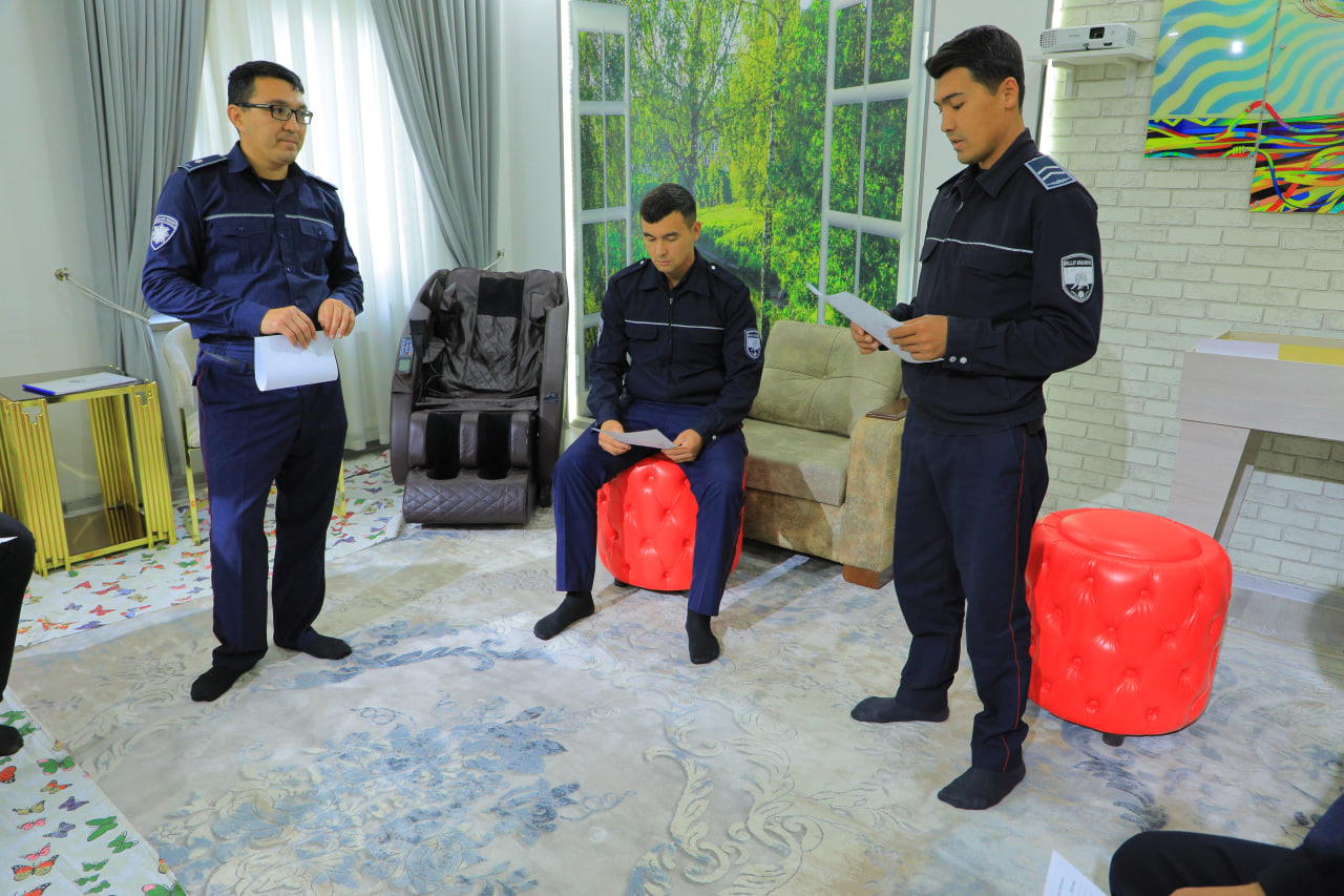 Jumladan, kuni kecha Samarqand shahar "Qoʻriqlash" boʻlimi shaxsiy tarkibi bilan "Muammo va salbiy holatlardan qutilish" mavzusiga bagʻishlangan navbatdagi psixologik trening boʻlib oʻtdi.