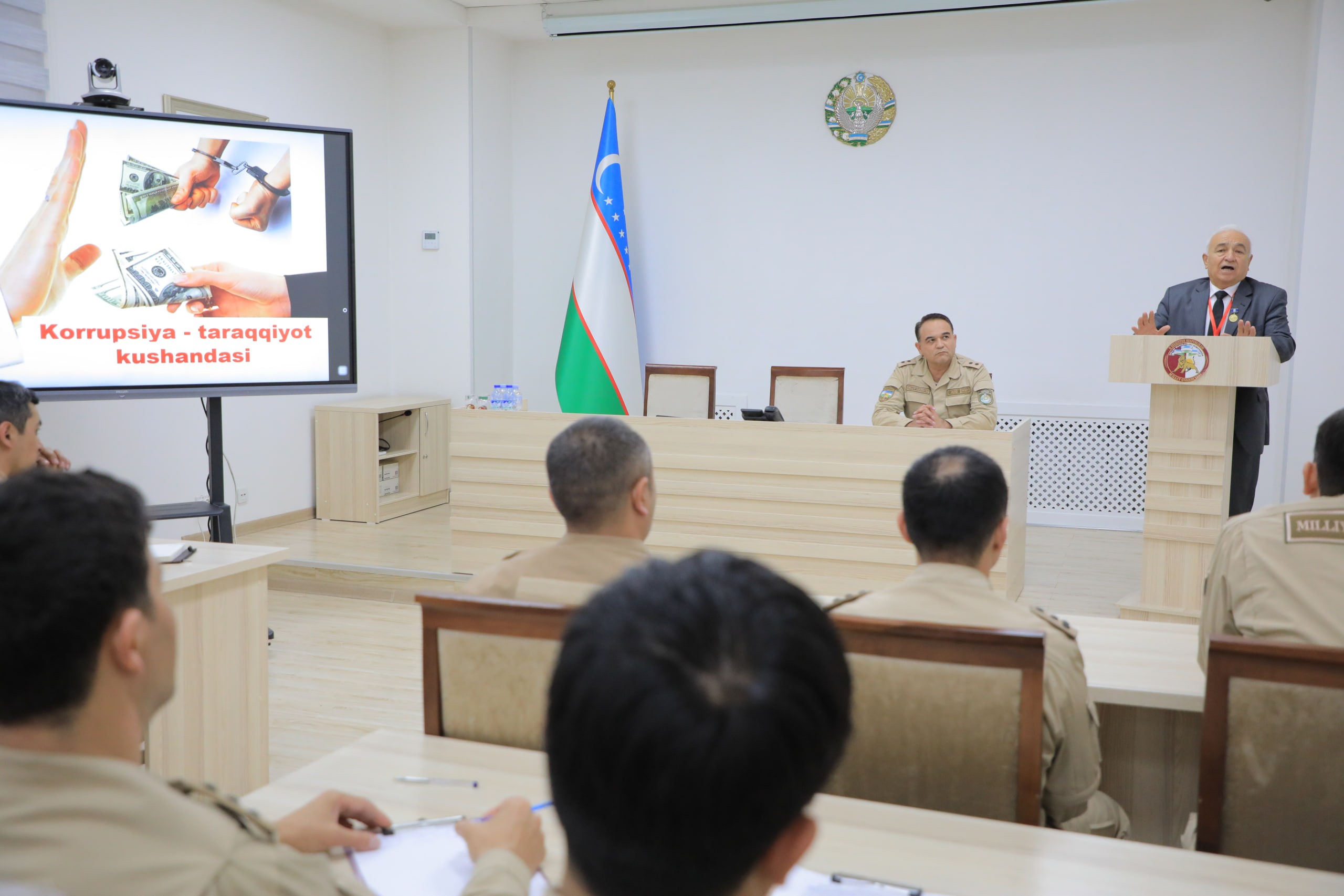 Davlatimiz rahbarining Korrupsiyaga qarshi kurashish milliy kengashi yigʻilishida soʻzlagan nutqi va unda yurtimizda korrupsiyadan holi muhit yaratish borasida amalga oshirilishi lozim boʻlgan dolzarb vazifalarning mazmun-mohiyati, amalga oshirish mexanizmlarini yetkazish, shuningdek Toshkent mintaqaviy oʻquv markazi shaxsiy tarkibi va tinglovchilari oʻrtasida korrupsion holatlarga nisbatan murosasiz muhitni yaratish maqsadida Oʻzbekistonda xizmat koʻrsatgan jurnalist, siyosiy sharhlovchi, “Shuhrat” medali sohibi Qobilbek Karimbekov ishtirokida profilaktik tadbir oʻtkazildi.