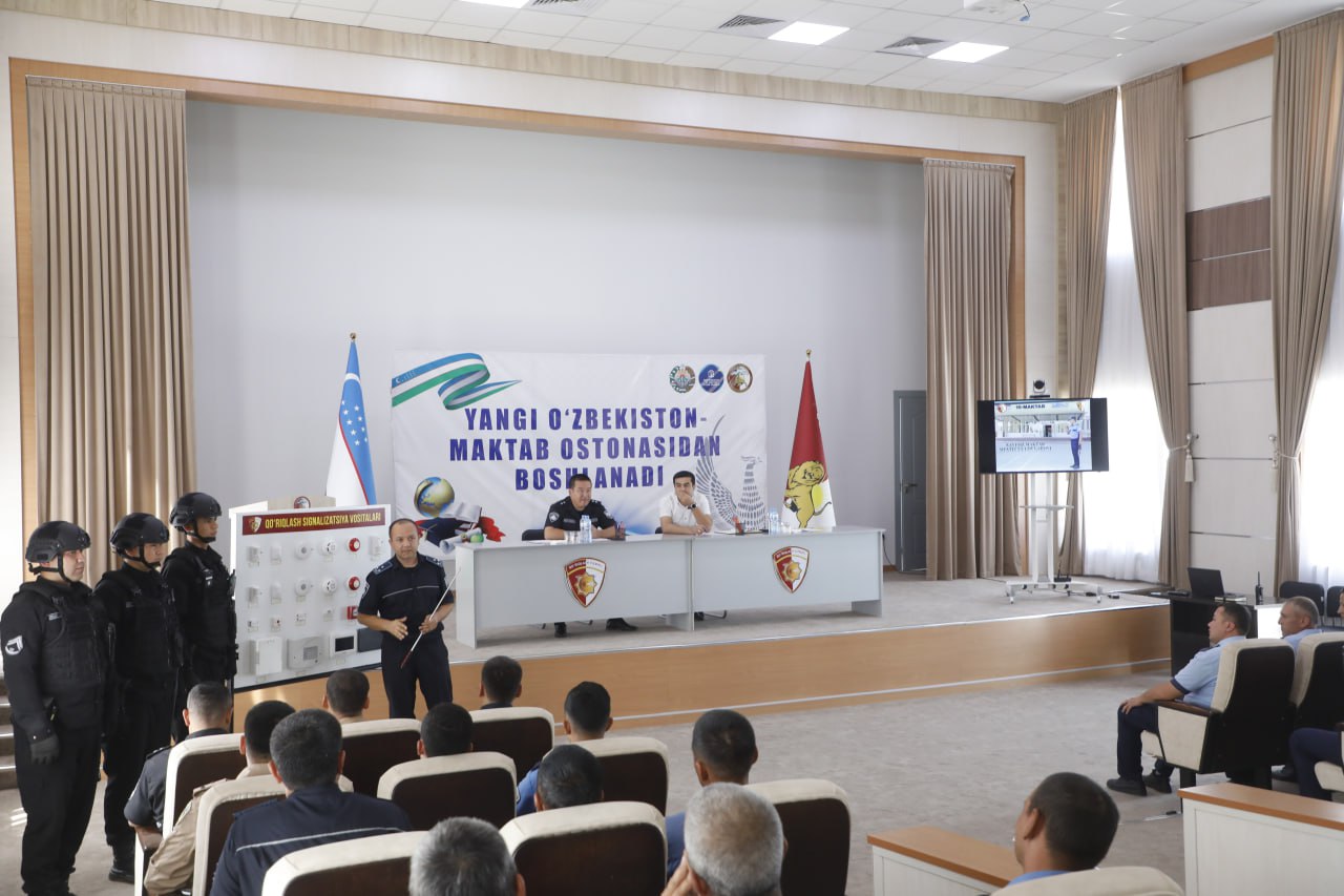 Jumladan, kuni kecha viloyat "Qoʻriqlash" boshqarmasi masʼullari tomonidan yangi oʻquv yili avvalida viloyatdagi mavjud umumtaʼlim maktablarida xizmat olib borayotgan idoraviy qorovullik boʻlinmalari ishchi-xizmatchilarining xizmat vazifalari va majburiyatlarini anglatish, javobgarlik xissini orttirish, oʻquv yili davomida xar qanday ehtimoliy-salbiy holatlarning oldini olish va huquqni muhofaza qiluvchi organlar bilan hamkorlikda ishlash koʻnikmalarini yaxshilash yuzasidan uchrashuv tashkil etildi.