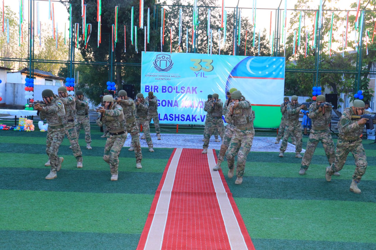 Harbiy orkestrning musiqiy guldastasi, Faxriy qorovul va xodimlarning koʻrgazmali chiqishlari tadbirga oʻzgacha shukuh baxsh etib, bolajonlarga xursandchilik bagʻishladi. Bundan tashqari, “Muruvvat” uyi tarbiyalanuvchilarining maʼnaviy ruhiy holatini koʻtarishga qaratilgan konsert dasturi ham tashkil etilib, ularning maʼnaviy xordiq chiqarishlariga hissa qoʻshildi. Shuningdek, bolajonlar ham oʻzlari tayyorlagan sahna koʻrinishlarini mehmonlarga havola etishdi. Bayram tadbiri yakunida esa bolajonlarga Milliy gvardiya sovgʻalari topshirildi.
