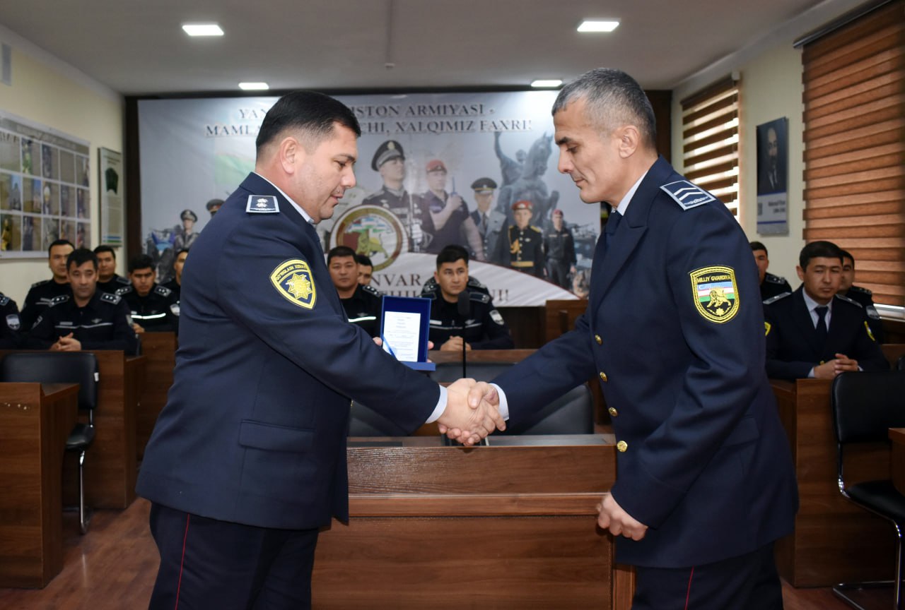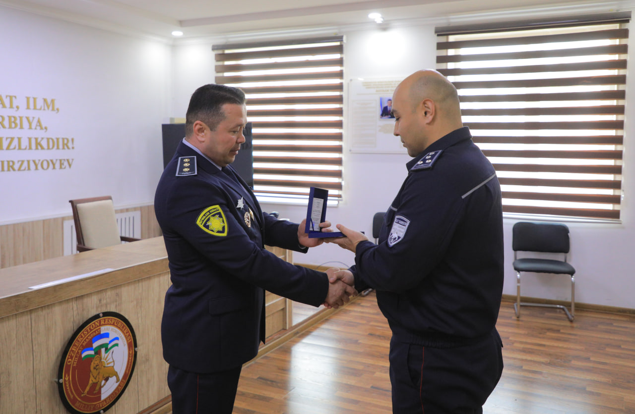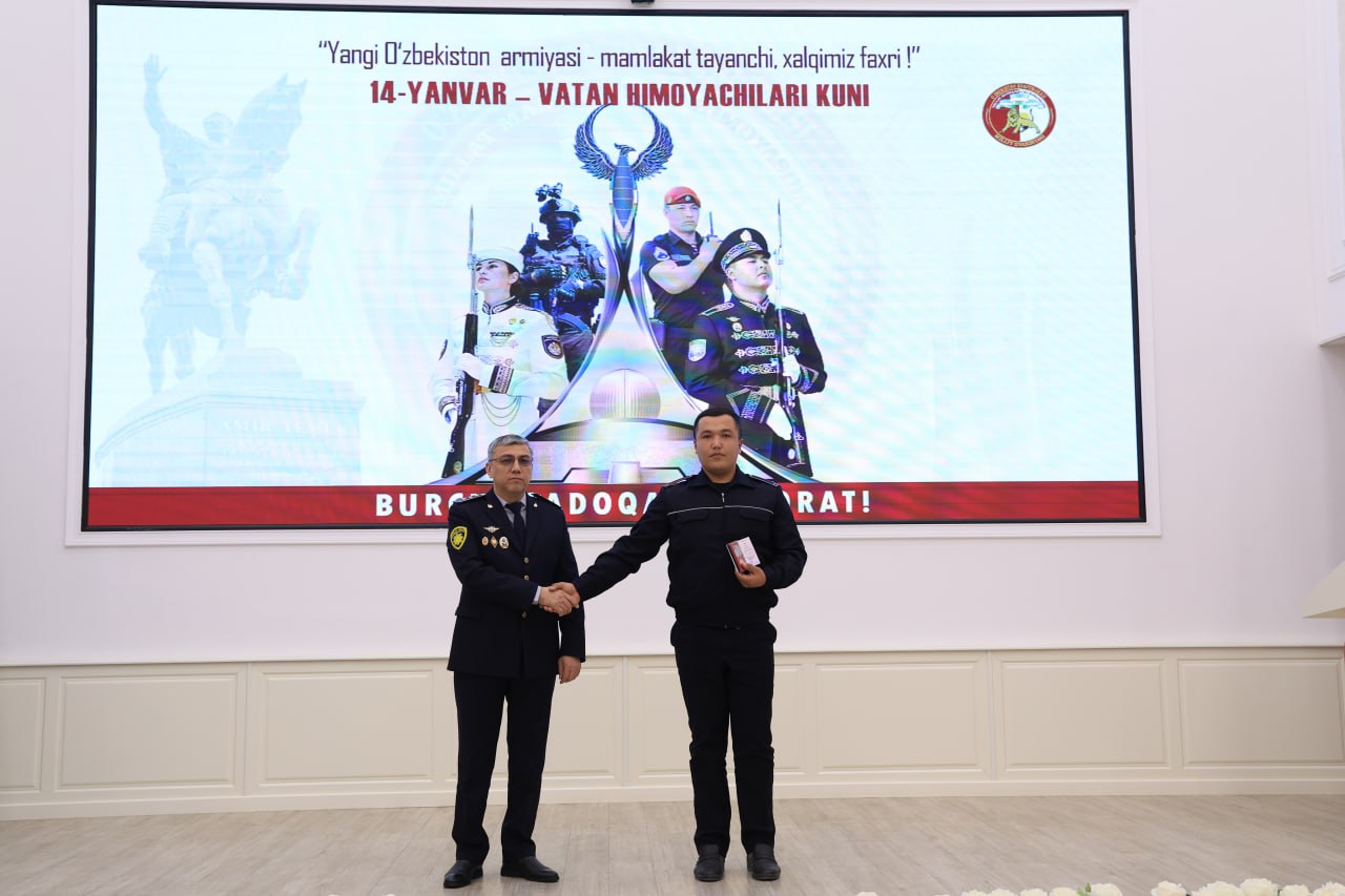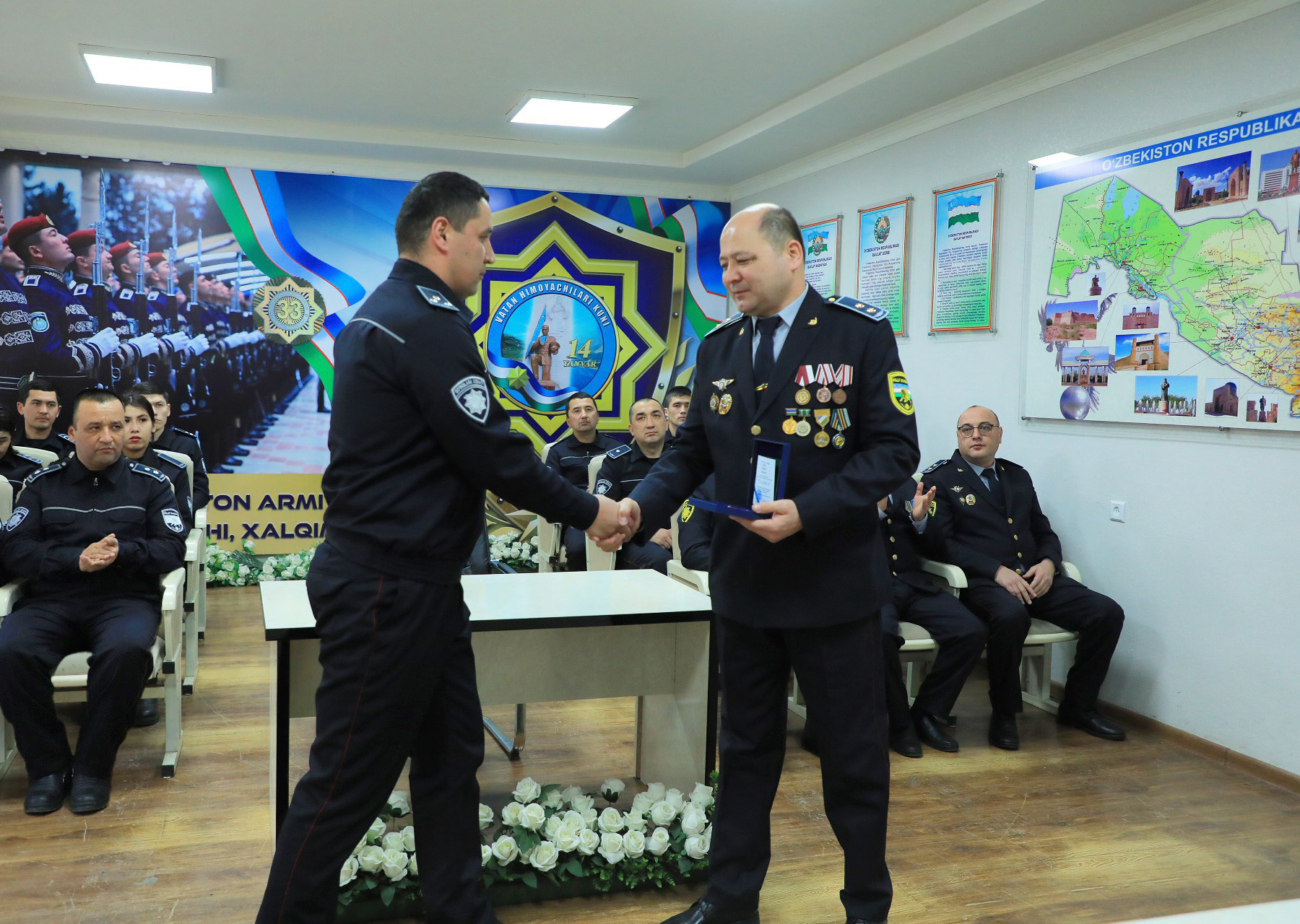 Tadbirning ikkinchi qismida Milliy gvardiya tizimlarida samarali xizmat qilib, yurtimiz osoyishtaligi yoʻlida jonbozlik koʻrsatayotgan, fuqarolarning mol-mulki daxlsizligini taʼminlashdek eng ulugʻ va olijanob ishni sidqidildan bajarayotgan bir guruh xodimlar, tizim faxriylari hamda xizmat vaqtida halok boʻlgan xodimlarning oila aʼzolariga Milliy gvardiyaning idoraviy koʻkrak nishonlari, navbatdagi unvonlar, faxriy yorliq va tashakkurnomalar tantanali tarzda topshirildi.