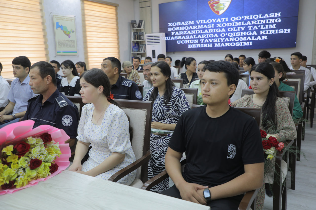 Xorazm viloyati Qoʻriqlash boshqarmasida koʻp yillar davomida sidqidildan xizmat qilib, oʻz fidoyiligi, masʼuliyati va yuksak intizomi bilan hamkasblariga oʻrnak boʻlgan bir guruh soha xodimlarining farzandlari oliy taʼlim muassasalariga kirish uchun navbatdagi tavsiyanomalarni qabul qilib olishdi.