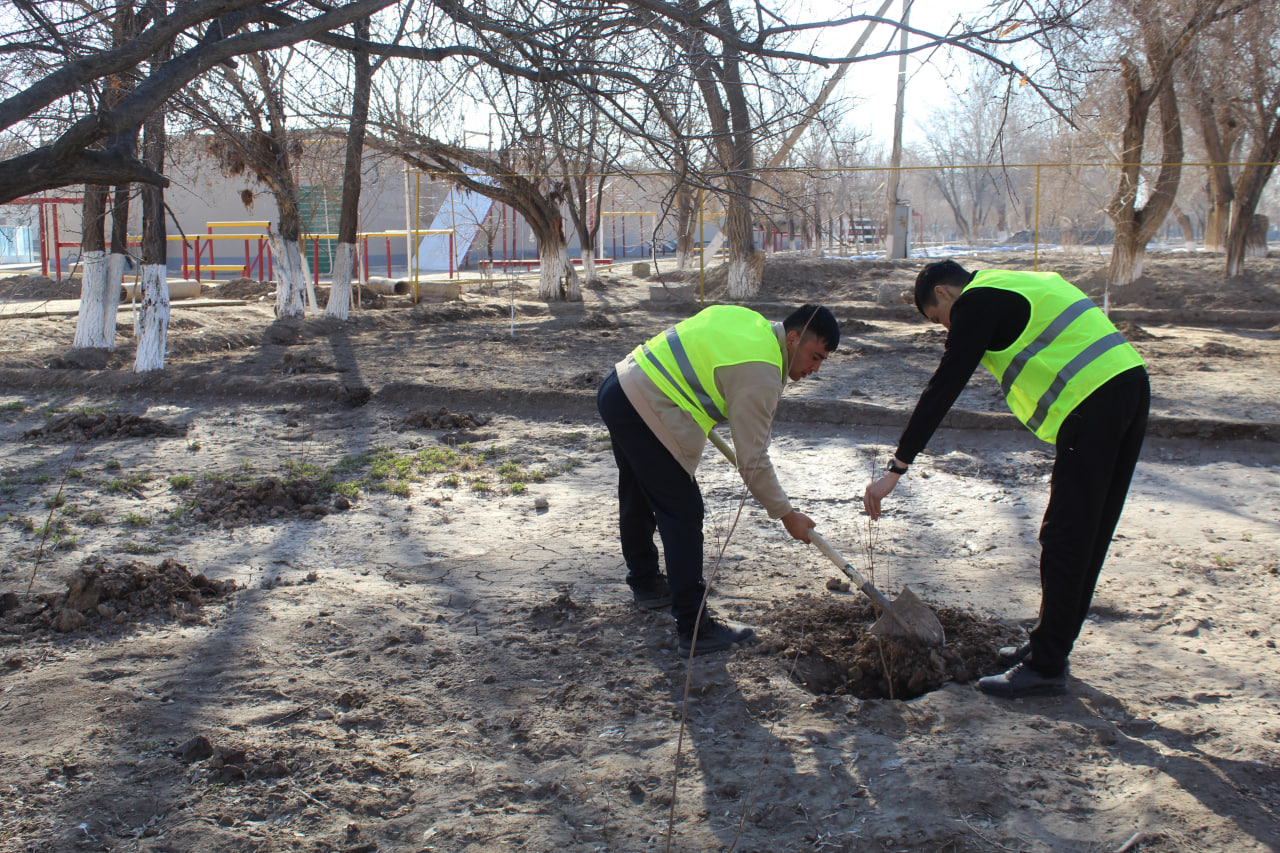 Jumladan, yer maydoni begona oʻtlardan tozalanib, hudud iqlimiga mos hamda suvsizlikka chidamli boʻlgan manzarali va mevali koʻchatlar ekildi va shakllar keltirilib, daraxtlar ohaklandi.