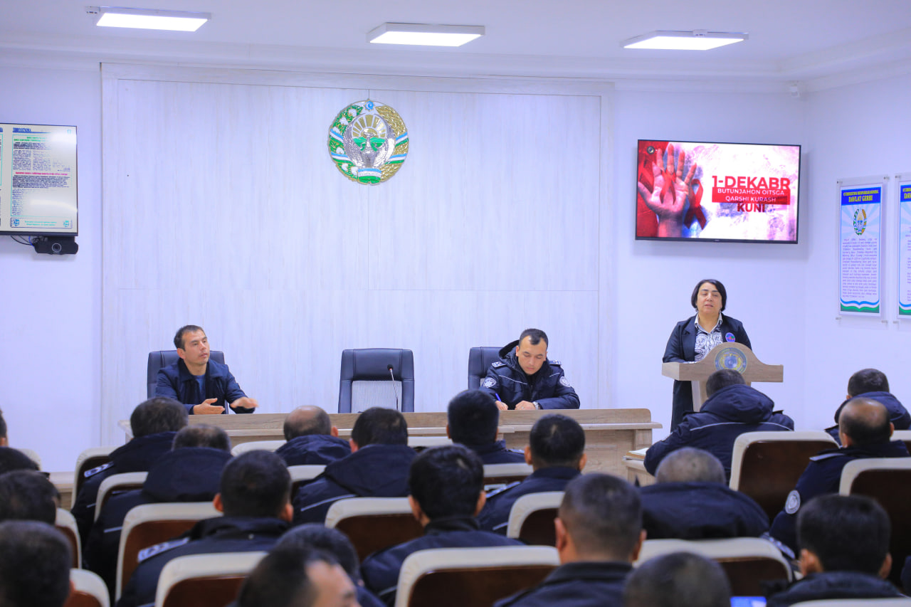 1 dekabr – Butunjahon OITSga qarshi kurashish kuni munosabati bilan Samarqand shahar Qoʻriqlash boʻlimida “Biz OITSga qarshimiz” shiori ostida uchrashuv oʻtkazildi. Qoʻriqlash boʻlimi masʼullari va shaxsiy tarkib ishtirok etgan davra suhbatida soʻz olganlar, bugun dunyo ahlini tashvishga solib kelayotgan asr vabosi yaʼni, OITS kasalligini yuqtirib olayotgan shaxslarning aksariyati spirtli ichimlik va giyohvandlik va nosogʻlom turmush tarzi natijasida yuqtirib olayotganligi, inson salomatligi va kelajagiga tahdid soluvchi salbiy oqibatlar har qanday inson hayotining izdan chiqib, taqdiri ayanchli boʻlishi, turli kasalliklarga jumladan OITS kasalligiga chalinishi va hayotdan bevaqt koʻz yumish kabi qismatli oqibatlarga olib kelishi toʻgʻrisida maʼlumot berdi.