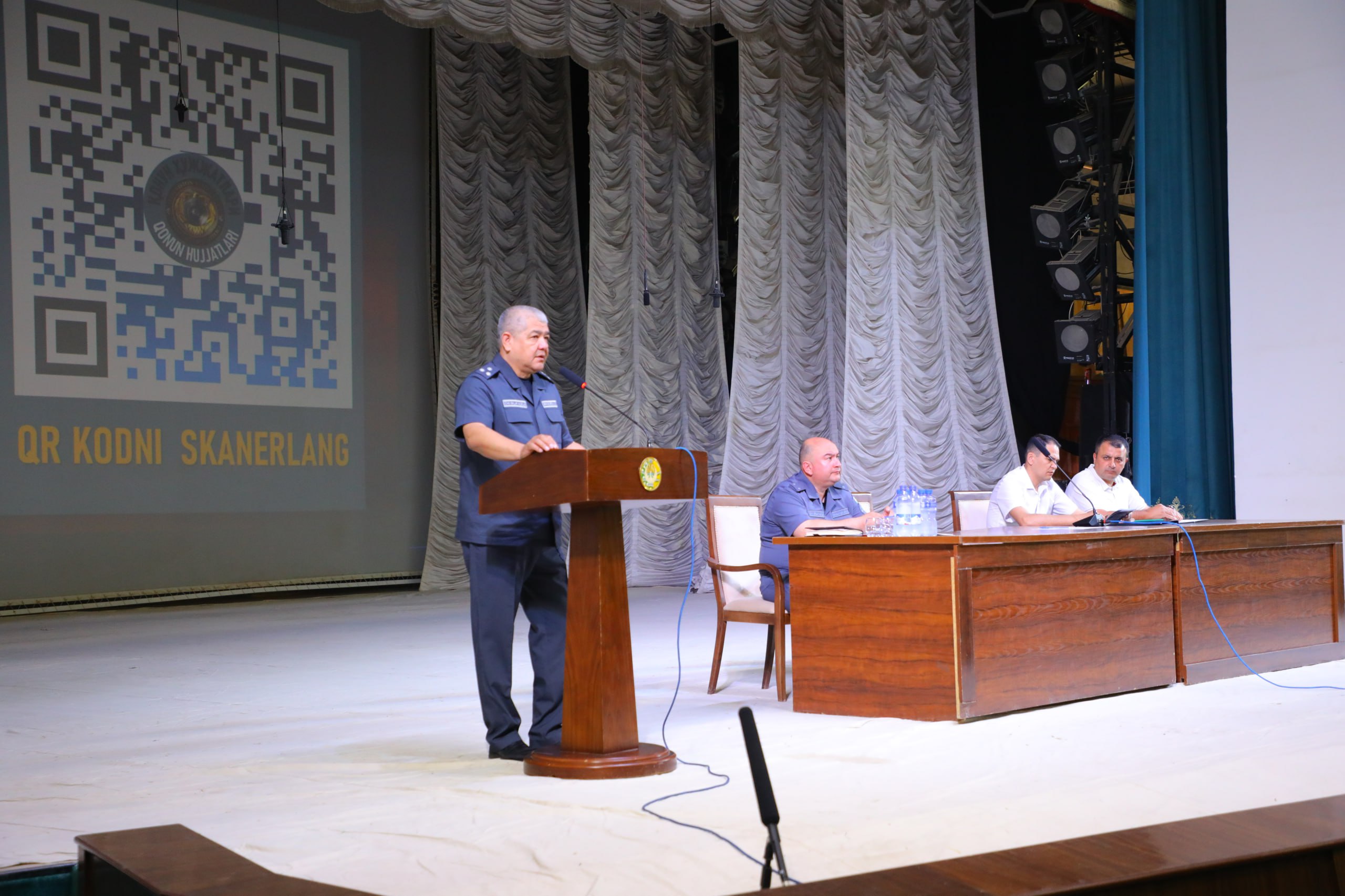 Surxondaryo viloyatida ichki ishlar organlari xodimlari ishtirokida nostandart vaziyatlarda toʻgʻri qaror qabul qilish koʻnikmalariga, yuksak huquqiy madaniyat va maʼnaviy-maʼrifiy sifatlarga ega boʻlgan professional xodimlarni tarbiyalash maqsadida sayyor oʻquv mashgʻulotlari tashkil etildi.
