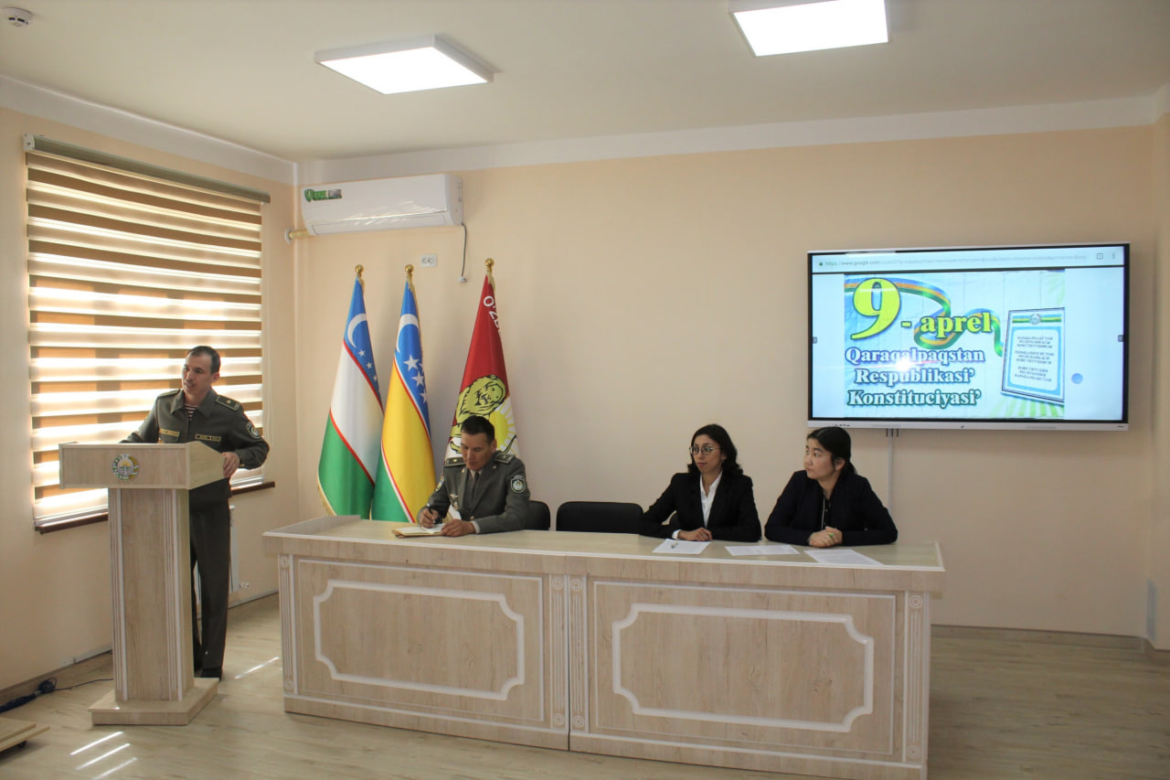 По случаю 30-летия Конституции Республики Каракалпакстан на днях в Региональном учебном центре Национальной гвардии республики состоялся круглый стол на тему «Конституция – закон счастливой жизни» с участием личного состава центра и ответственных сотрудников Министерства юстиции республики.