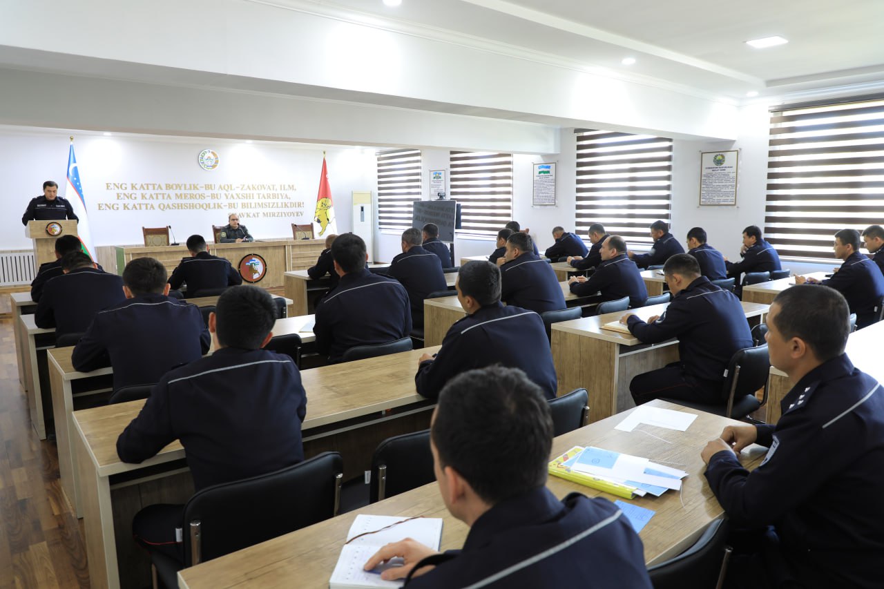 В целях дальнейшего повышения правовой грамотности сотрудников и укрепления служебной дисциплины среди них организованы открытые диалоги на тему «Верховенство закона – неотвратимость наказания» с участием сотрудников Управления «Охраны» Наманганской области.