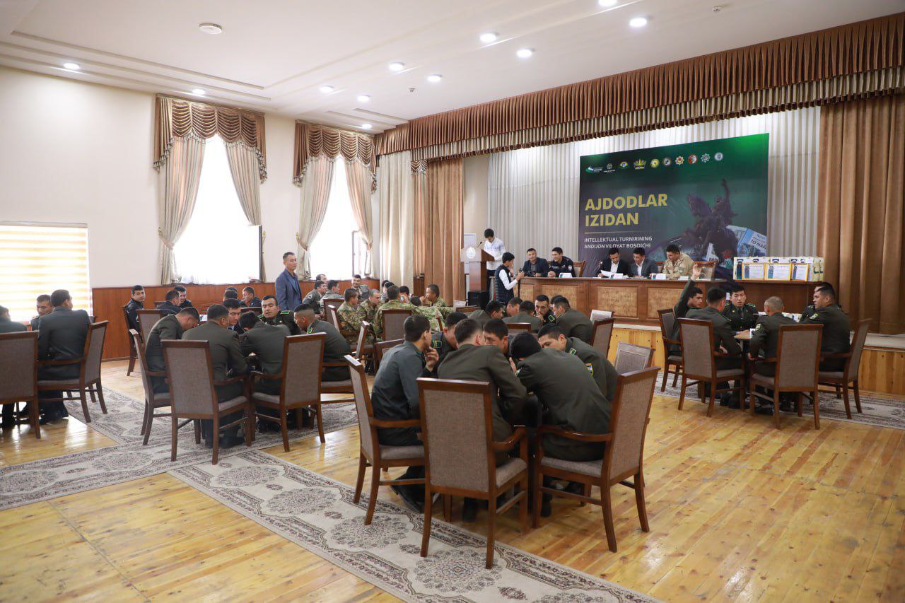 На днях Андижанский областной совет Союза молодежи Узбекистана провел в Управлении Национальной гвардии по Андижанской области областной этап интеллектуального конкурса «По стопам предков» среди военнослужащих и сотрудников областных воинских частей и учреждений Министерства обороны, Национальной гвардии и Пограничных войск СГБ.