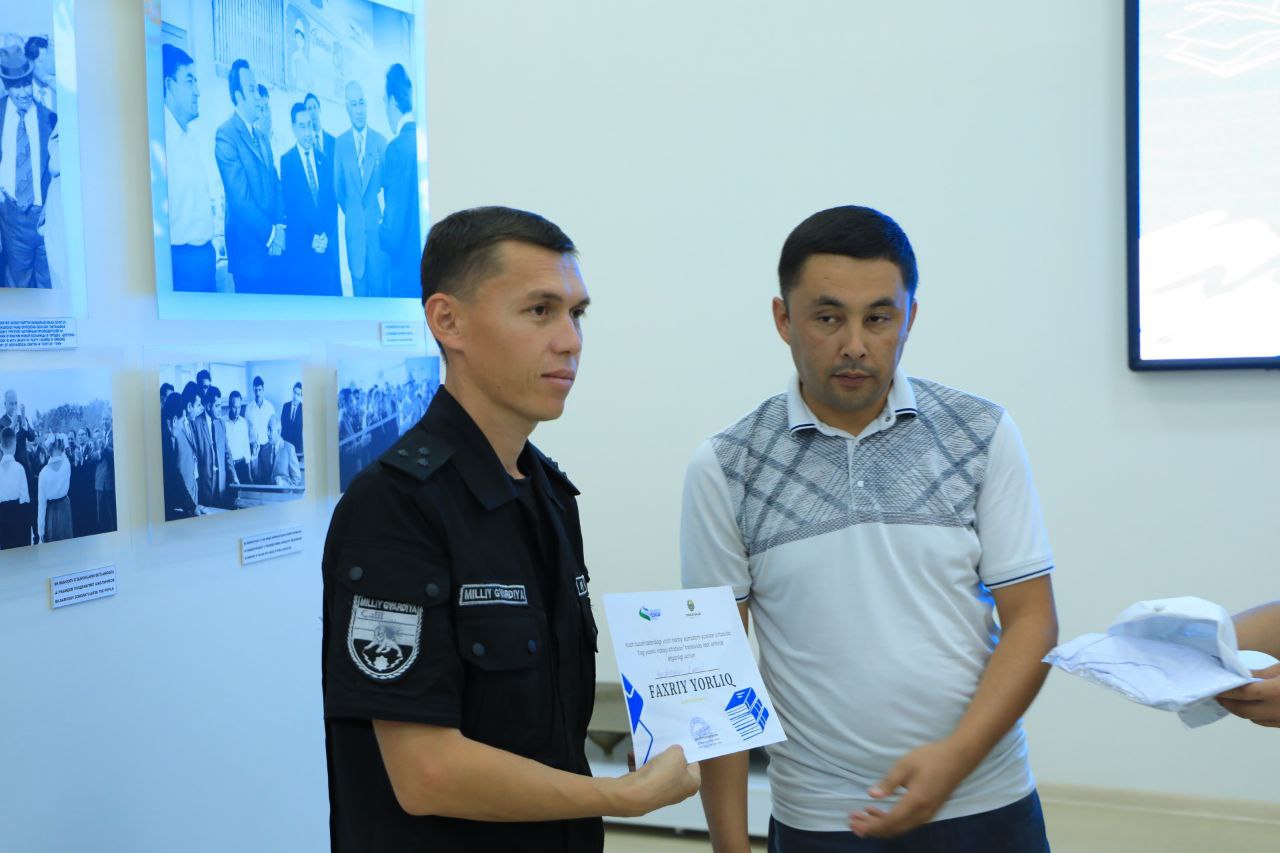 В целях широкого изучения и пропаганды творческого наследия наших великих ученых, писателей и мыслителей, расширения мировоззрения и кругозора мышления молодежи, повышения ее творческого потенциала, содействия становлению духовно зрелыми личностями, дальнейшего повышения интереса к чтению книг, а также любви к произведениям узбекской и мировой литературы на днях Управление «Охраны» Джизакской области совместно с областным советом Союза молодежи Узбекистана и отделением Агентства по делам молодежи организовали в музее Ш.Рашидова, что в городе Джизаке, областной этап конкурса «Лучший книголюб» среди молодых военнослужащих и сотрудников правоохранительных органов.
