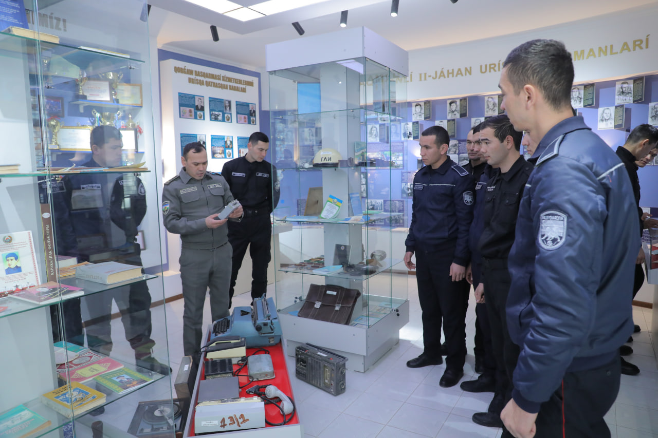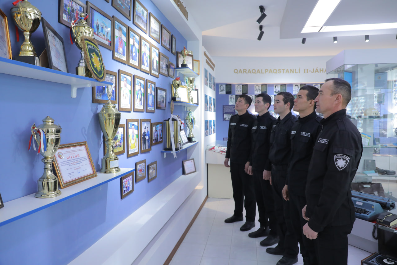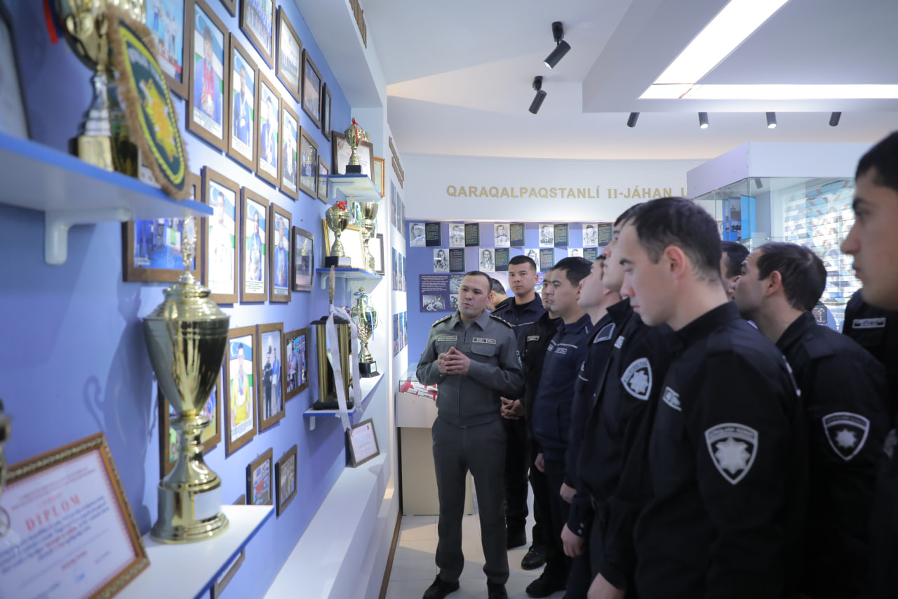 В целях укрепления чувств патриотизма и сопричастности судьбе Родины, организации содержательного досуга слушателей Регионального учебного центра Республики Каракалпакстан Национальной гвардии Республики Узбекистан регулярно проводятся духовно-просветительские мероприятия. Так, например, на днях по инициативе регионального учебного центра для слушателей, обучающихся на курсах начальной подготовки, организована поездка в Управление «Охраны» Национальной гвардии Республики Каракалпакстан, а также экскурсия в Музей истории службы «Охрана».