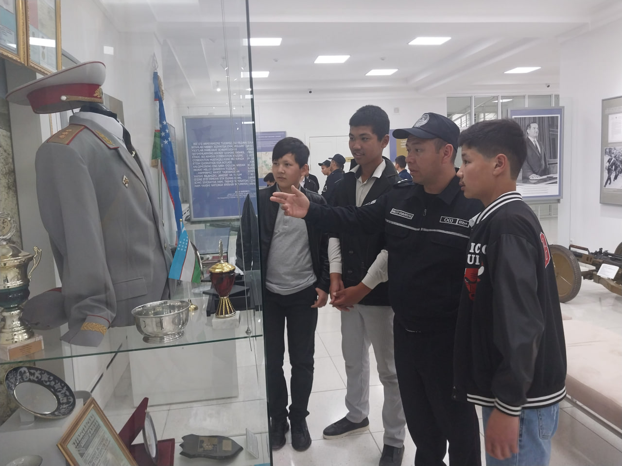 В целях воспитания молодежи в духе военного патриотизма и вовлечения в профессию военного сотрудники отдела «Охраны» Кибрайского района Ташкентской области организовали для учащихся общеобразовательной школы № 20 района поездку в Государственный музей Вооруженных Сил Республики Узбекистан.